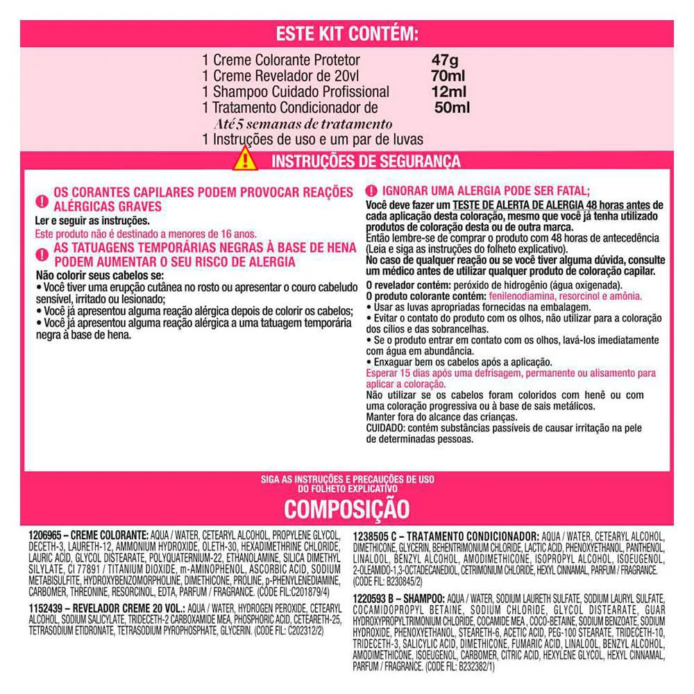 - Tripla proteção que restaura e colore a fibra capilar simultaneamente.