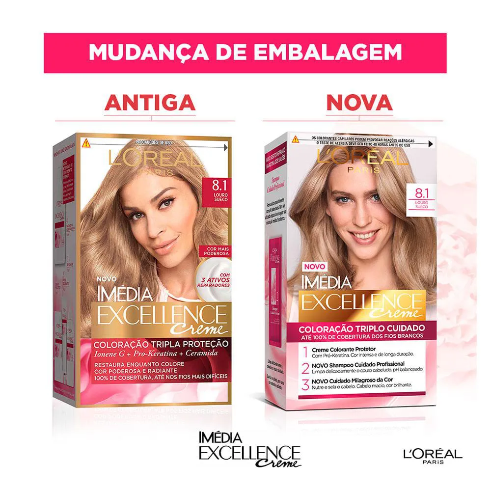 Imédia Excellence restaura enquanto colore pois é enriquecida com ativos conhecidos por seu poder reparados. Com Ionene G, Pro-Keratina e Ceramida restaura, fortalece e protege seu cabelo para melhor receber a cor. Um cuidado mais poderoso, cor mais poderosa.