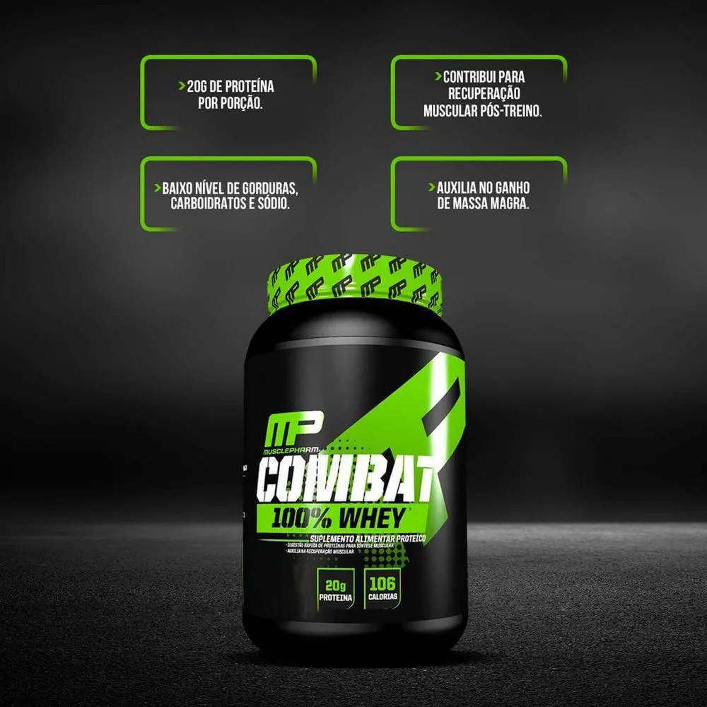 Combat 100% Whey da Muscle Pharm é constituído de whey protein concentrado de alto valor nutricional, ideal para a reconstrução das fibras musculares após treinos de resistência.