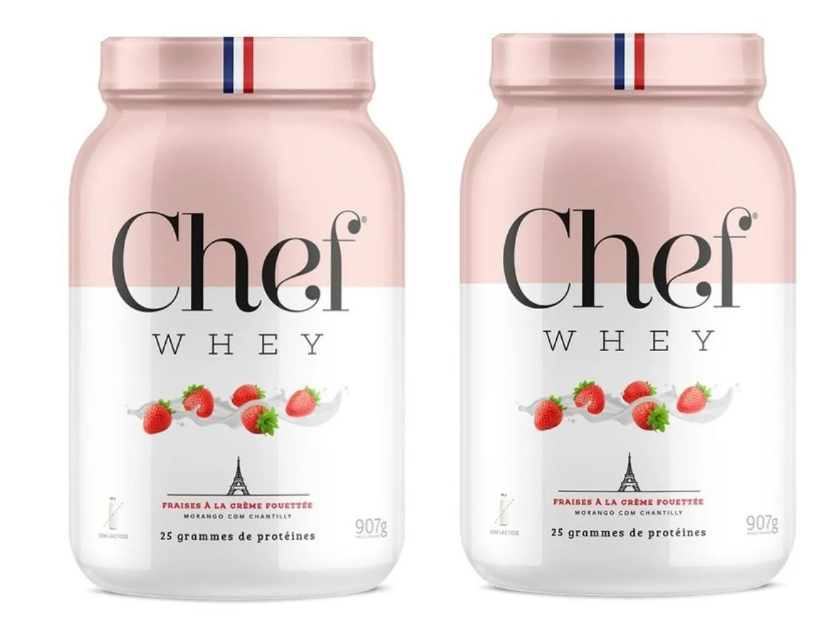 Combo 2 Whey Zero Lactose 907G Morango com Chantilly Chef Whey