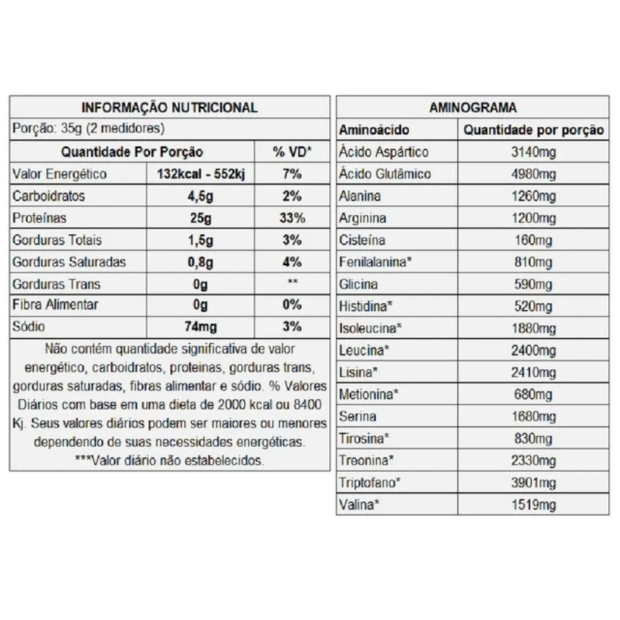 Combo 2 Whey Zero Lactose 907g Morango com Chantilly Chef whey protein é um suplemento de Whey Protein Gourmet, excelente para atletas e praticantes de atividades físicas que buscam por construção, manutenção e recuperação muscular. Utiliza como fonte de proteína Whey Protein concentrado ZERO LACTOSE, a forma mais pura de Whey Protein que existe. Assim, cada porção de Chef Whey Protein da Chef Whey contém 25g da mais pura proteína para ganho de massa muscular por dose. Possui o mais alto valor biológico da proteína e a maior capacidade de absorção pelo organismo, além de ser rico em aminoácidos essenciais como o bcaa, elemento diretamente ligado ao aumento da massa muscular magra e à reconstrução dos músculos. BENEFÍCIOS: - Tem ação antioxidante; - ZERO LACTOSE; - Ideal para quem busca o emagrec e/ou definição; - Auxilia no ganho de massa muscular; - Fortalece o sistema imunológico; - Auxilia na manutenção e recuperação muscular; - Equilíbrio do nitrogênio; - Proteínas de qualidade; - Alta concentração de BCAA por dose; - Alto teor de Leucina; - 25 g de proteínas por dose; - Não contém glúten; - Baixa quantidade de carboidratos; - Auxilia na recuperação muscular. INFORMAÇÃO NUTRICIONAL Porção: 35g (2 medidores) Quantidade por Porção: - Valor Energético: 134kcal-563kj - Carboidratos: 5g - Proteínas: 25g - Gorduras Totais: 1,6g - Gorduras Saturadas: 0,8g; - Gorduras Trans: 0g; - Fibra Alimentar: 0g; - Sódio: 78mg. Aminograma(Aminoácido/Quantidade por Porção): - Ácido Aspaártico: 3690mg; - ÁcidoGlutâmico: 5860mg; - Alanina: 1480mg; - Arginina: 1410mg; - Cisteína: 190mg; - Fenilalanina: 960mg; - Glicina: 690mg; - Histidina: 610mg; - Isoleucina: 2210mg; - Leucina: 2820mg; - Lisina: 2840mg; - Metionina: 800mg; - Serina: 1980mg; - Tirosina: 970mg; - Treonina: 2750mg; - triptofano: 4589mg; - Valina: 1787mg. COMO TOMAR: Misture 35g (dois medidores completo) em 150ml de água. Consumir uma porção diariamente ou conforme orientação de um nutricionista ou médico. INGREDIENTES: Caramelo Salgado: Proteína concentrada do soro do leite instantânea (WPC 80), espessantes goma guar e xantana, aroma idêntico ao natural de doce de leite, cloreto de sódio, edulcorantes sucralose, acesulfame de potássio e natural red A (glicosídeos de esteviol) e corante artificial de caramelo. NÃO CONTÉM GLÚTEN. ALÉRGICOS: CONTÉM DERIVADOS DE LEITE E SOJA* NÃO CONTÉM LACTOSE.