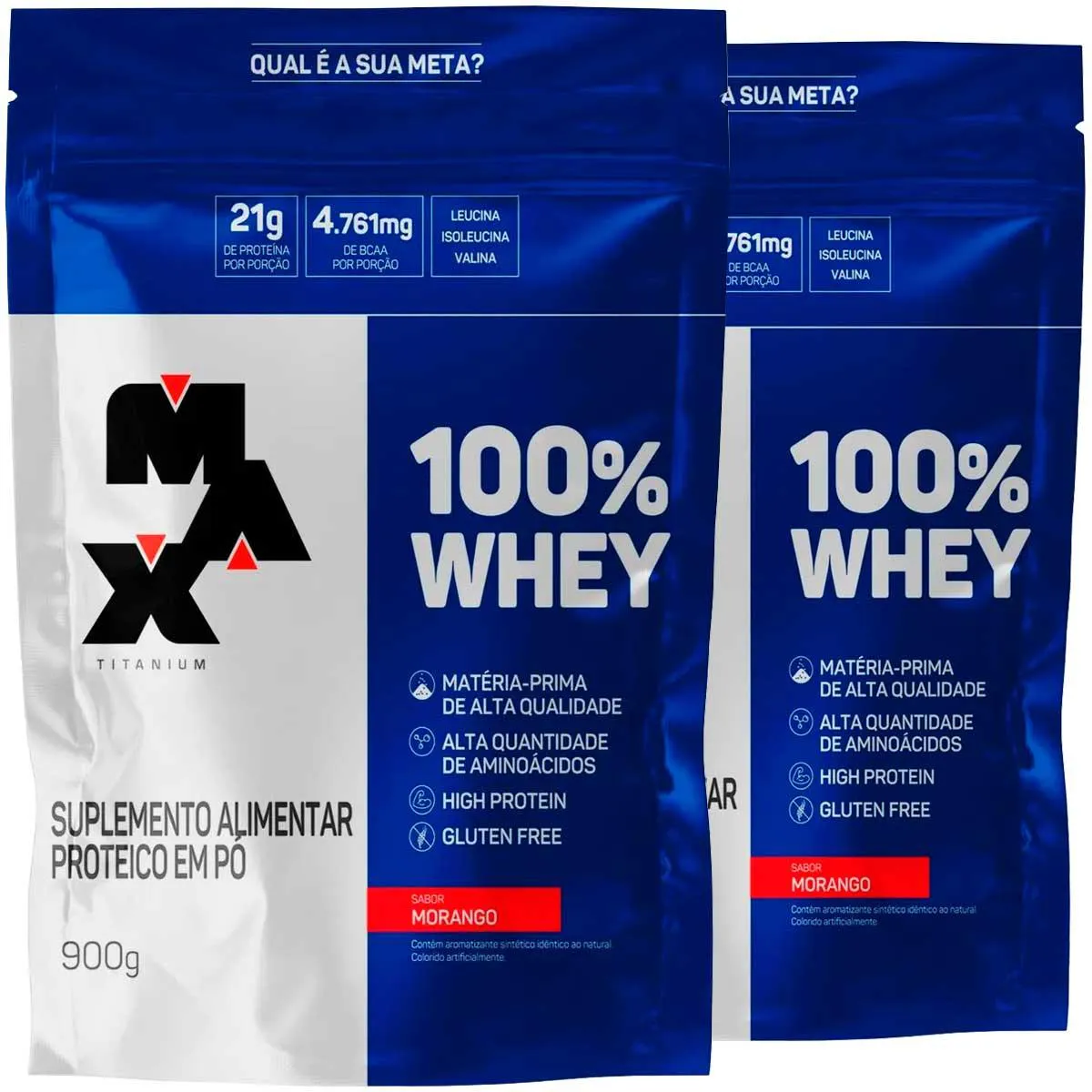 Combo 2X 100% Whey Protein 900G - Max Titanium Sabor Morango