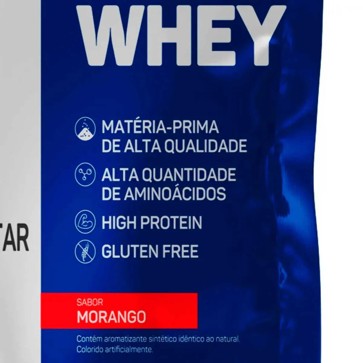 Morango: Proteína concentrada do soro do leite (WPC), aromatizantes, acidulante ácido cítrico, emulsificante lecitina de soja*, edulcorante sucralose e corantes artificiais amaranto e azul brilhante fcf. NÃO CONTÉM GLÚTEN. *utilizada na fabricação da proteína do soro do leite com a função de deixar o produto instantâneo (fácil diluição).