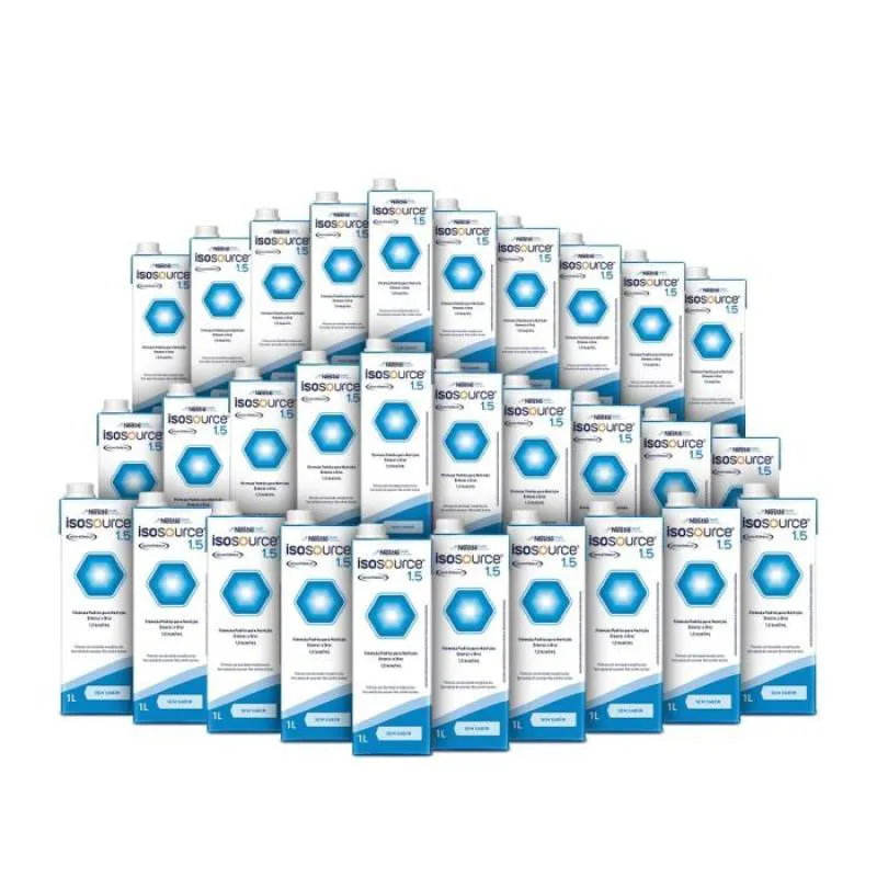 Combo com 30 unidades de Isosource 1.5. Fórmula padrão para nutrição enteral e oral, com densidade energética alta.