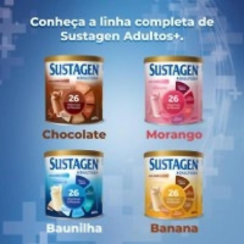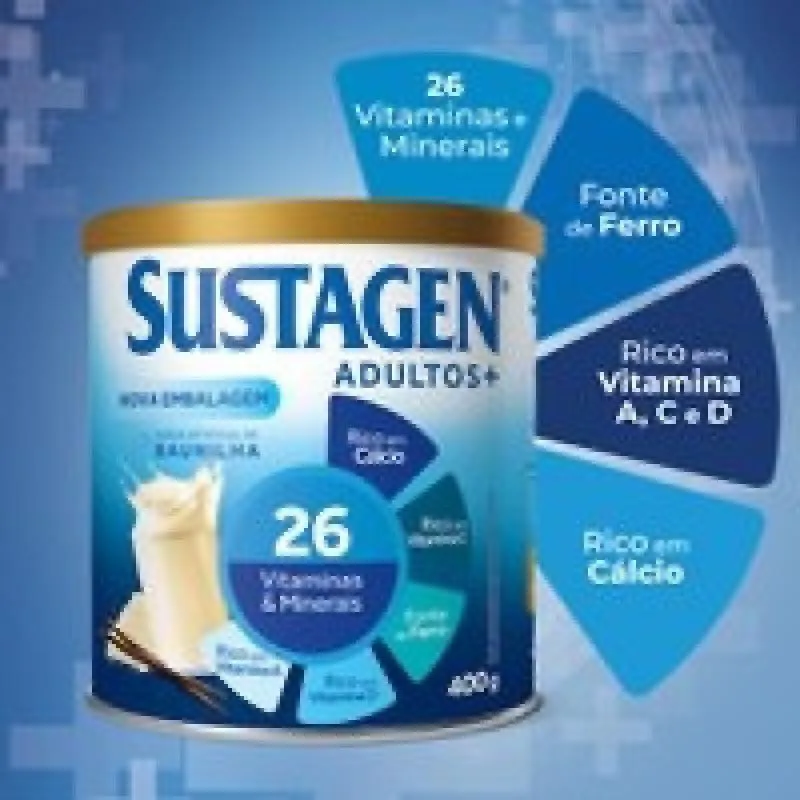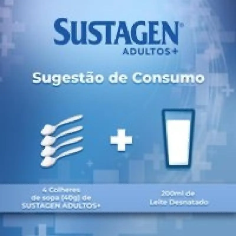 - Sustagen Adultos+ é um aliado do dia a dia para uma alimentação equilibrada que, somando à pratica de atividades físicas, complementam um estilo de vida saudável.