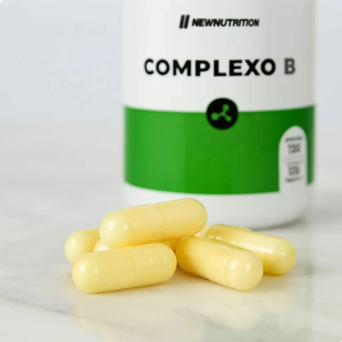 Complexo B 120 Capsulas New Nutrition cápsulas com complexo de vitaminas B, frasco com 120 unidades, para suporte diário.