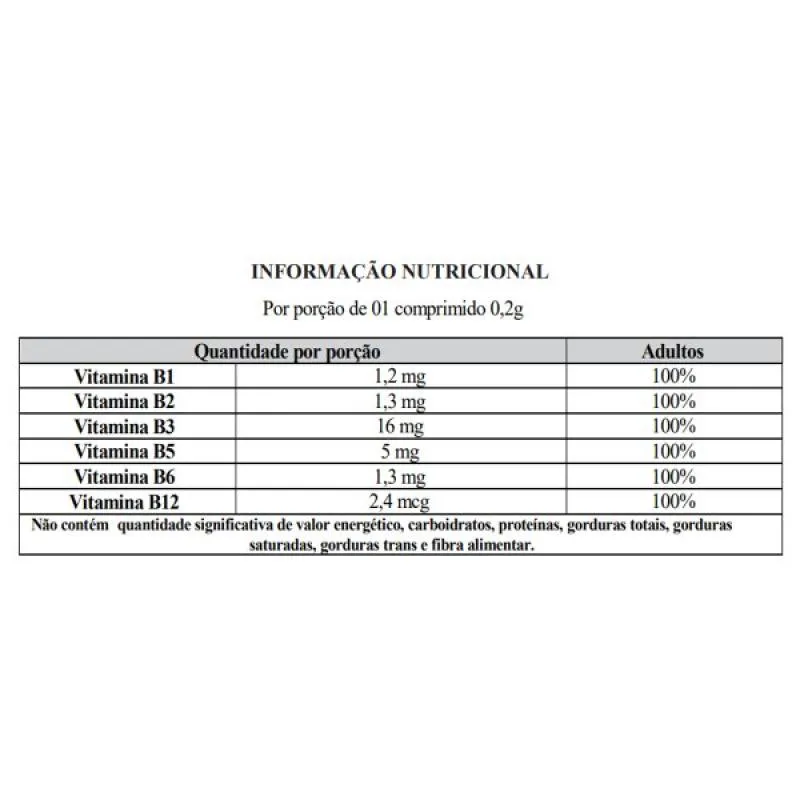 vitamina B1 é fonte de tiamina que auxilia no metabolismo energético, de proteínas, carboidratos e gorduras.Vitamina B2 é fonte de riboflavina que auxilia no metabolismo energético, de proteínas, carboidratos e gorduras. Auxilia ainda na proteção dos danos causados pelos radicais livres, auxilia na visão, no metabolismo do ferro, contribuindo também para a manutenção da pele e de mucosas.A vitamina B3 é fonte de niacina e contribui para a manutenção da pele, auxilia na manutenção da mucosa, no metabolismo energético e no metabolismo de proteínas, carboidratos e gorduras.A vitamina B5 é fonte de ácido pantotenico e auxilia no metabolismo energético.A vitamina B6 auxilia na auxilia na formação das células vermelhas do sangue, no funcionamento do sistema imune, no metabolismo energético, de proteínas, carboidratos, gordura, do glicogênio e da homocisteína.A vitamia B12 auxilia na formação de células do sangue, no funcionamento do sistema imune, bem como no metabolismo energético