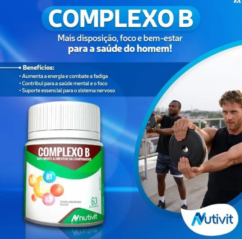 Complexo B Vitaminas B1, B2, B3, B5, B6, B7, B12 C/ 60 Cápsulas Nutivit