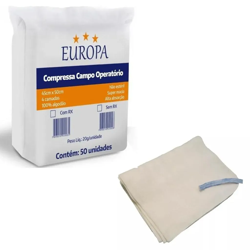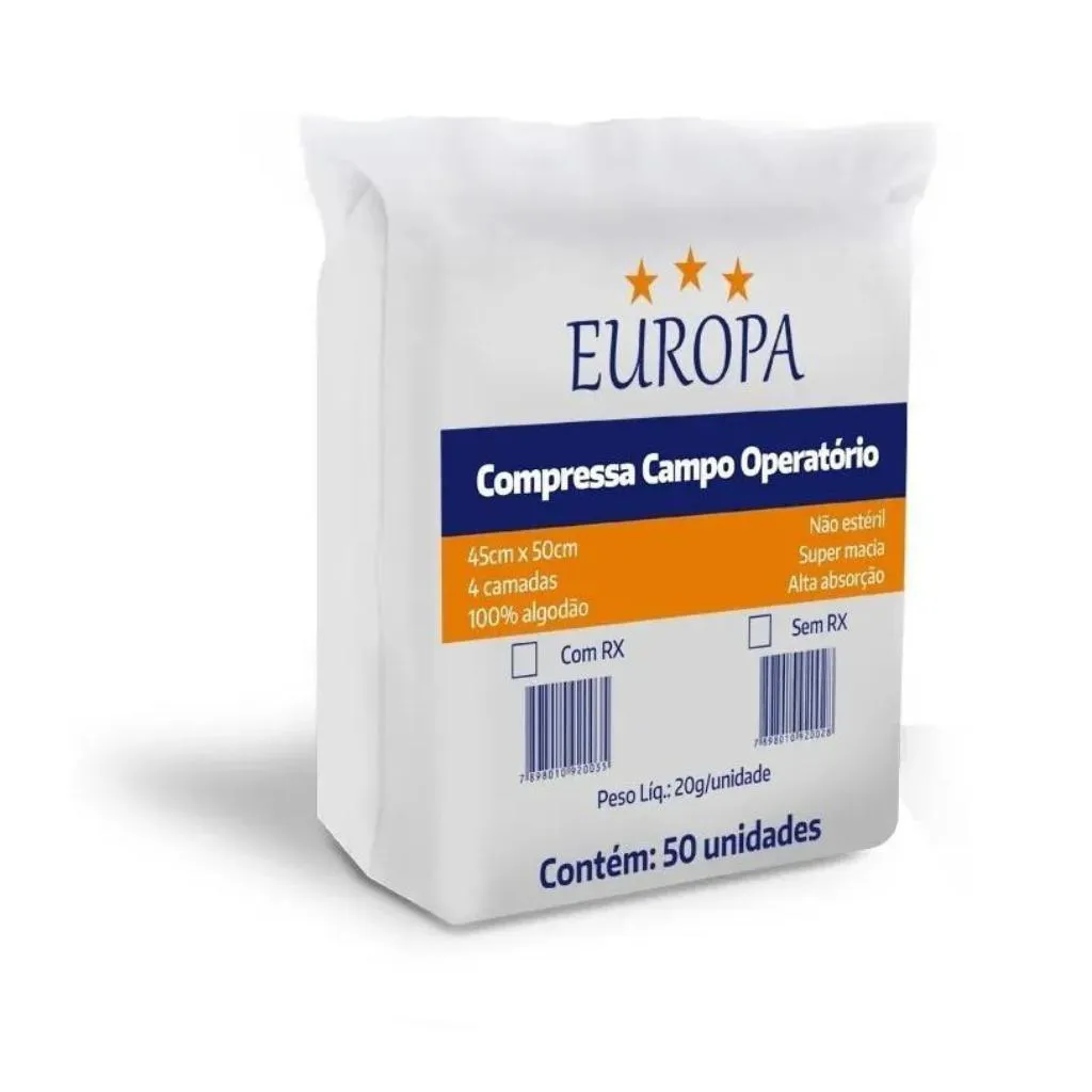 Compressa Cirurgica Campo Operatório 45X50 C/50 Unidades - Europa