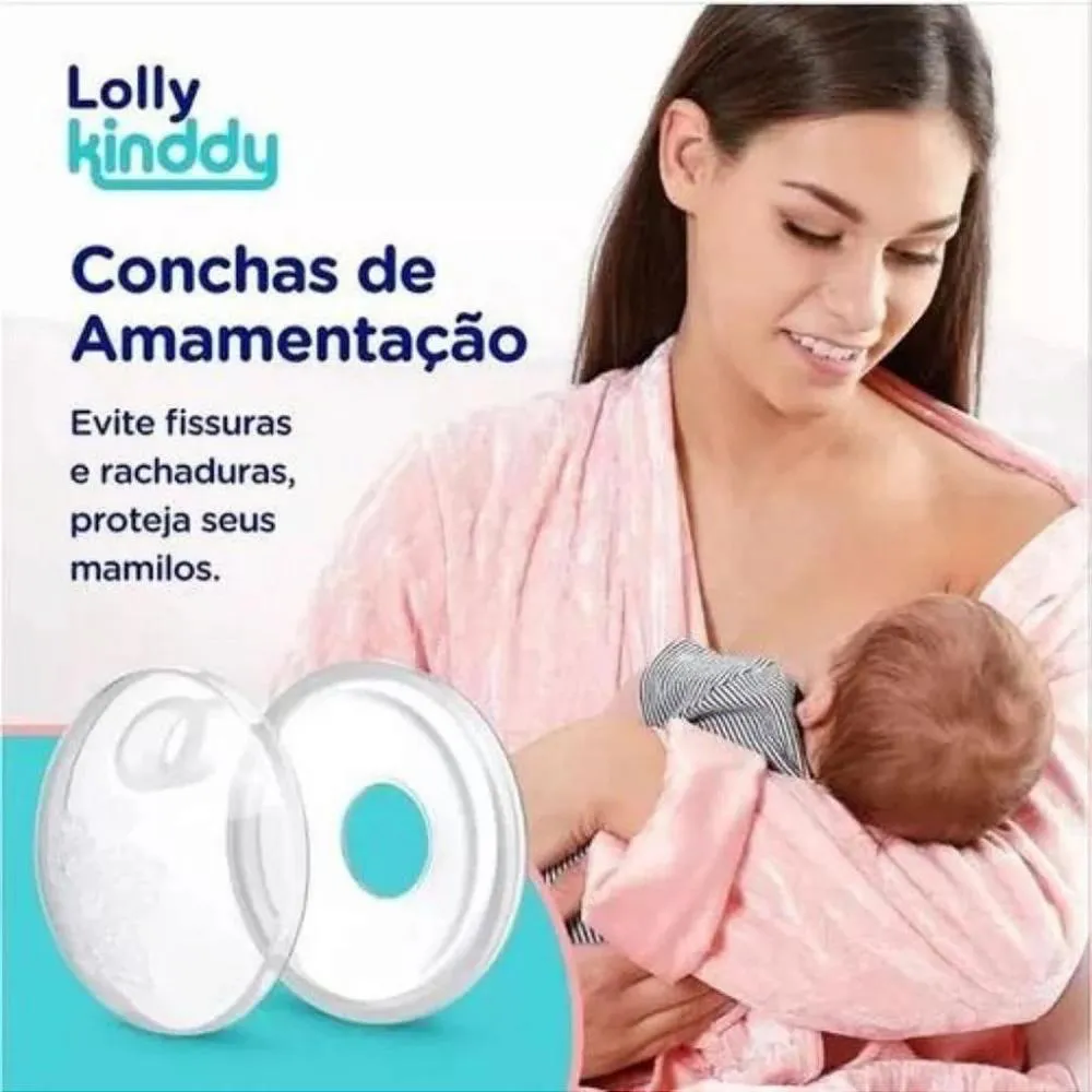2 Conchas de amamentação Pós-parto Lolly Kinddy. Base macia, válvula de ventilação que evita lesões e favorece a cicatrização. Auxiliam na preparação e formação do bico para a pega correta do bebê, além de proteger o mamilo e evitar rachaduras e vazamentos. Podem ser usadas a partir da 35ª semana de gestação. É indicada para todos os tipos de bicos. Mantem o bico e a roupa secos. * A Organização Mundial da Saúde (OMS) e o Ministério da Saúde do Brasil recomendam aleitamento materno por dois anos ou mais, sendo exclusivo nos primeiros seis meses.