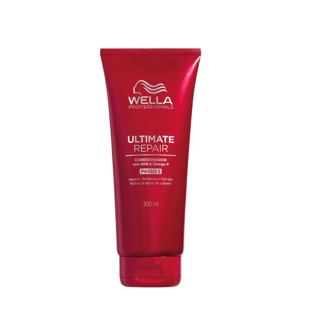 O condicionador Wella Ultimate Repair 200ml é um condicionador que fortalece e repara visivelmente os cabelos danificados, deixando-os brilhantes e macios. Sua fórmula combina o poder do AHA e do Ômega-9, ativos poderosos para os fios. Benefícios incluem reparação dos danos em 90 segundos, 99% menos quebra dos fios e 12 vezes mais maciez aos fios. A linha é vegana, cruelty-free, compatível com cabelos coloridos, dermatologicamente testada e gentil para o couro cabeludo. Para melhores resultados, use diariamente o shampoo, condicionador e leave-in da linha Ultimate Repair. A embalagem de 200ml é ideal para uso diário, oferecendo uma fragrância que exala elegância e modernidade. Este condicionador é perfeito para quem deseja cabelos mais fortes, reparados e com aparência saudável.