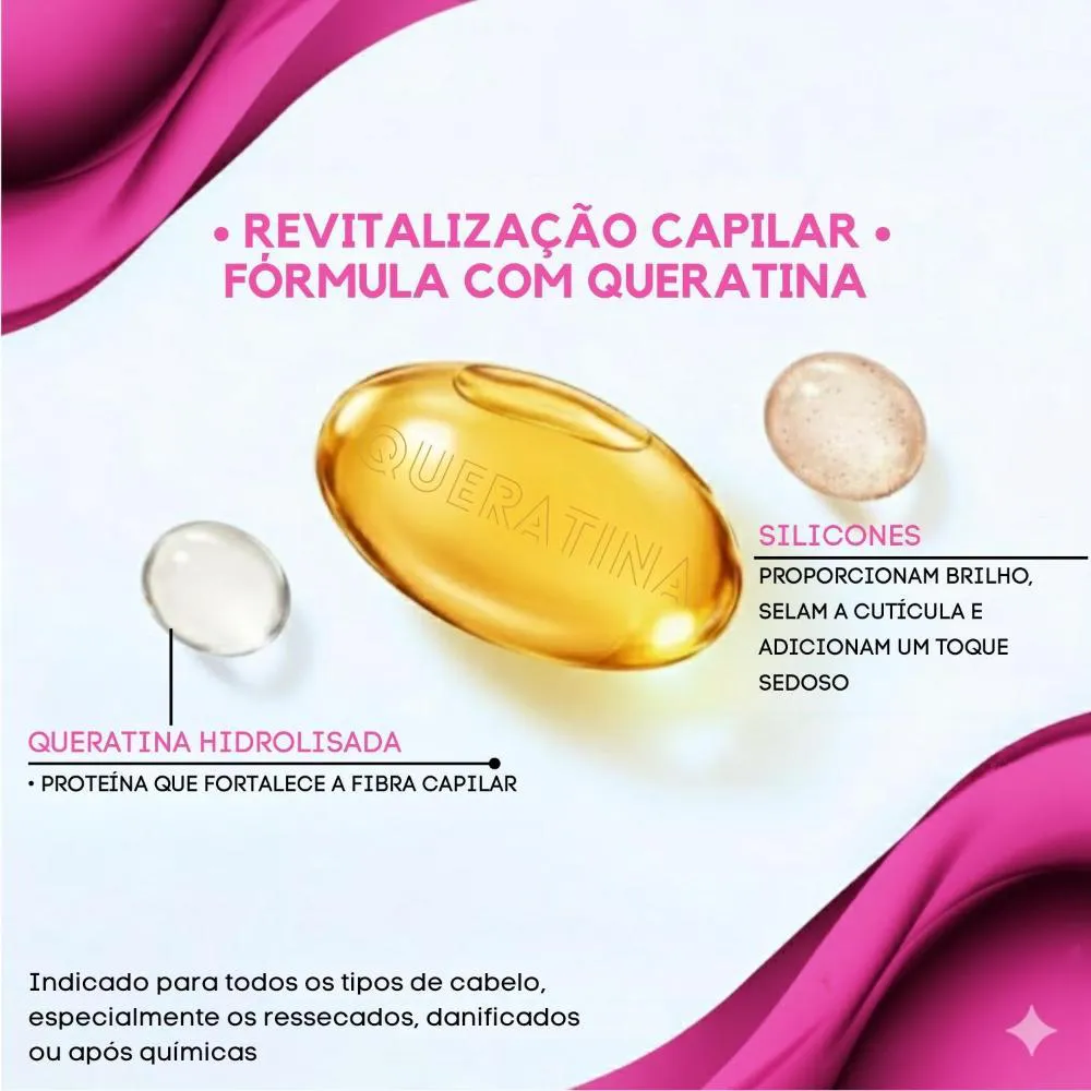 condicionador bifásico com queratina hidrolisada, desenvolvido para desembaraçar, nutrir e dar brilho intenso aos fios, sem enxágue. Sua fórmula 2 fases combina uma fase leve oleosa que sela a cutícula e outra aquosa que hidrata profundamente, restaurando vitalidade e toque sedoso.Indicado para todos os tipos de cabelo, especialmente para fios ressecados, danificados ou após químicas. Ele reduz o frizz, facilita o penteado, proporciona maciez e protege a estrutura capilar, garantindo fios mais fortes e aparência saudável.Com queratina como ativo principal, atua reforçando a fibra, melhorando a elasticidade e regenerando áreas mais fragilizadas. A textura bifásica permite uma aplicação fácil: agite antes de usar para misturar as fases, aplique do comprimento às pontas, sem necessidade de enxágue.Modo de uso: