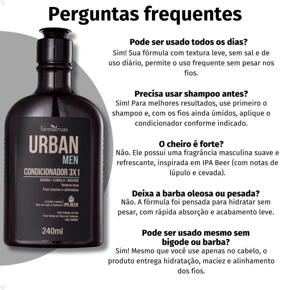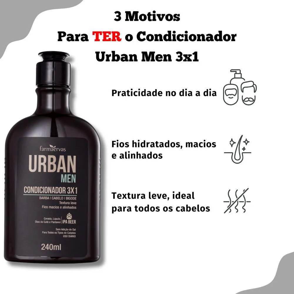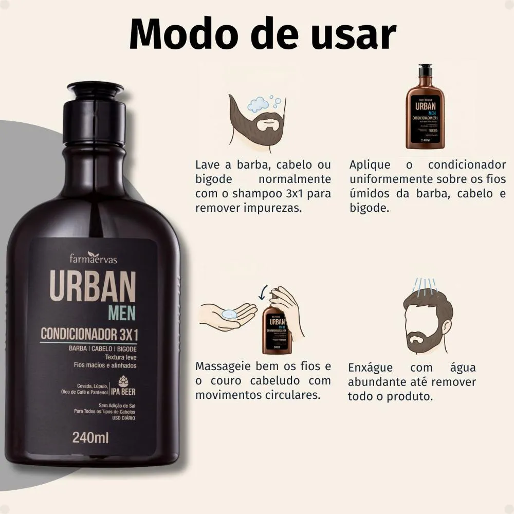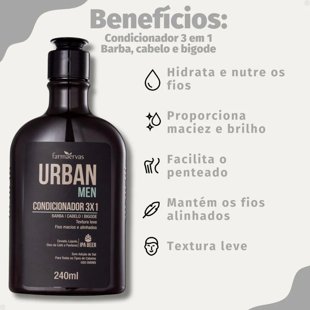 Condicionador 3x1 Farmaervas Urban Men Barba, Cabelo e Bigode 240ml