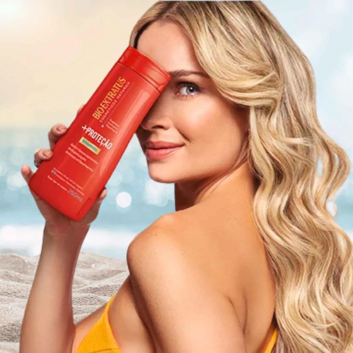 Praia, piscina, rua... os cabelos sempre encontram agentes agressores, em qualquer ambiente. Para evitar que os danos aconteçam, a linha +Proteção blinda os fios contra poluentes, tem ação quelante que desintoxica, eliminando metais pesados, ajuda a evitar e a retirar o esverdeado causado na piscina, protege do sol, do calor do secador, do desbotamento e do ressecamento. Um verdadeiro escudo protetor para os fios.