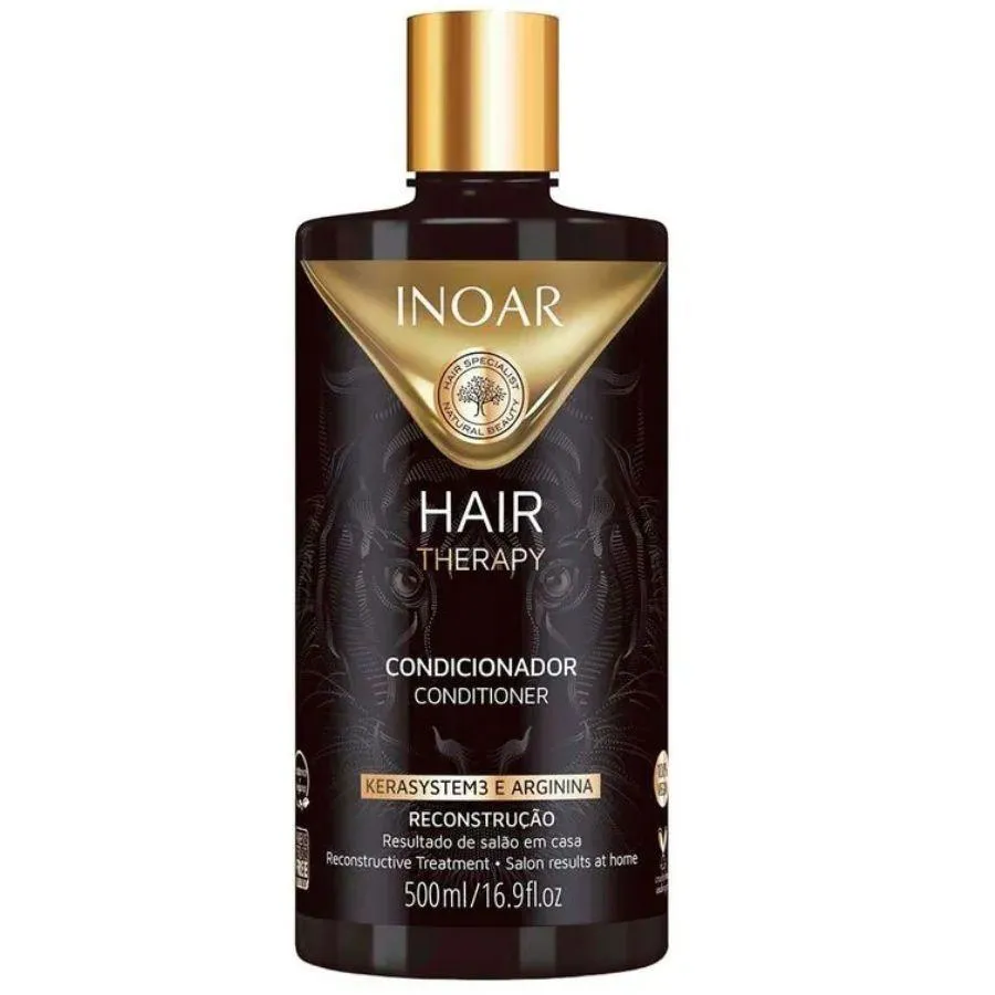 Inoar Hair Therapy condicionador para cabelos quimicamente tratados e secos. Inoar Hair Therapy proporciona ação antifrizz, elasticidade, suavidade e brilho, deixando os fios macios e com balanço. O Condicionador Inoar Hair Therapy tem fórmula enriquecida com KeraSystem 3 e Arginina, que agem diretamente no núcleo do cabelo, proporcionando hidratação e suavidade, além de manter a cor e o brilho intenso.