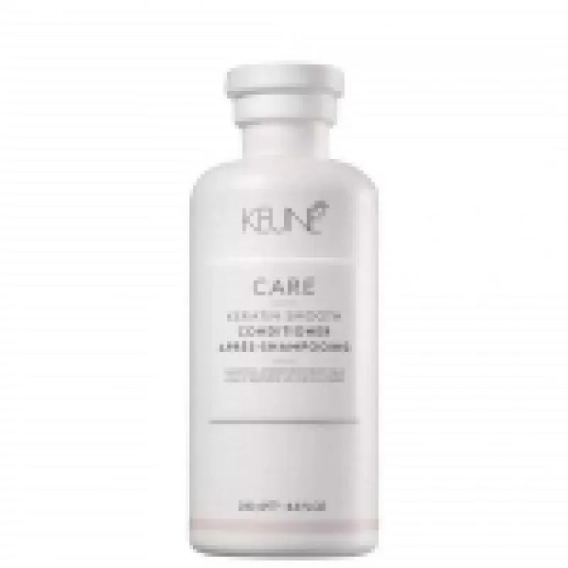 condicionador para cabelos com química. Keune Care Keratin Smooth Conditioner reduz frizz e previne quebra dos fios alisados definitivamente. Fortalece e repara o cabelo, repondo nutrientes e proteínas, para um cabelo muito mais forte e sedoso.Keune Care Keratin Smooth Conditioner repõe a queratina perdida durante processos químicos, reestruturando o fio e prevenindo a quebra, sendo ideal para cabelos com alisamento definitivo ou com mechas. Além disso, forma um filme protetor contra umidade e agressões externas, ajudando na durabilidade da química.