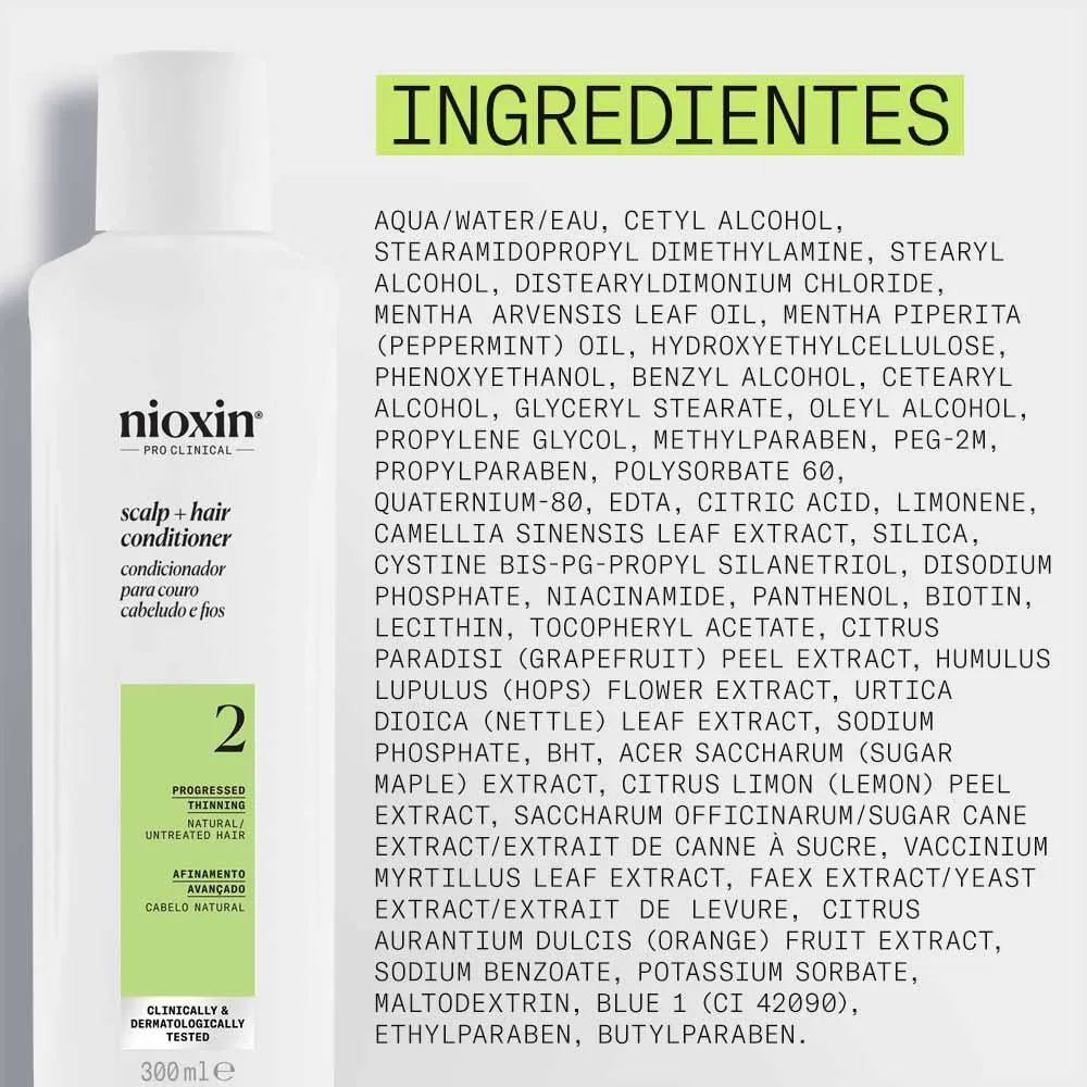 O Nioxin System 2 Condicionador é indicado principalmente para cabelos com afinamento avançado, mas pode ser usado por qualquer pessoa que deseje melhorar a densidade e a saúde dos fios. É ideal para quem busca um tratamento eficaz contra a queda capilar e deseja recuperar a vitalidade do cabelo.
