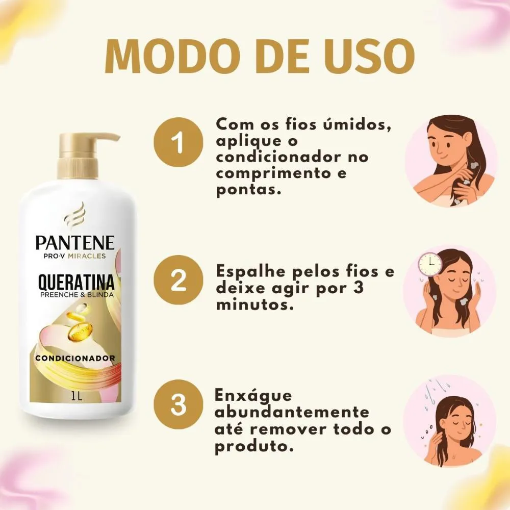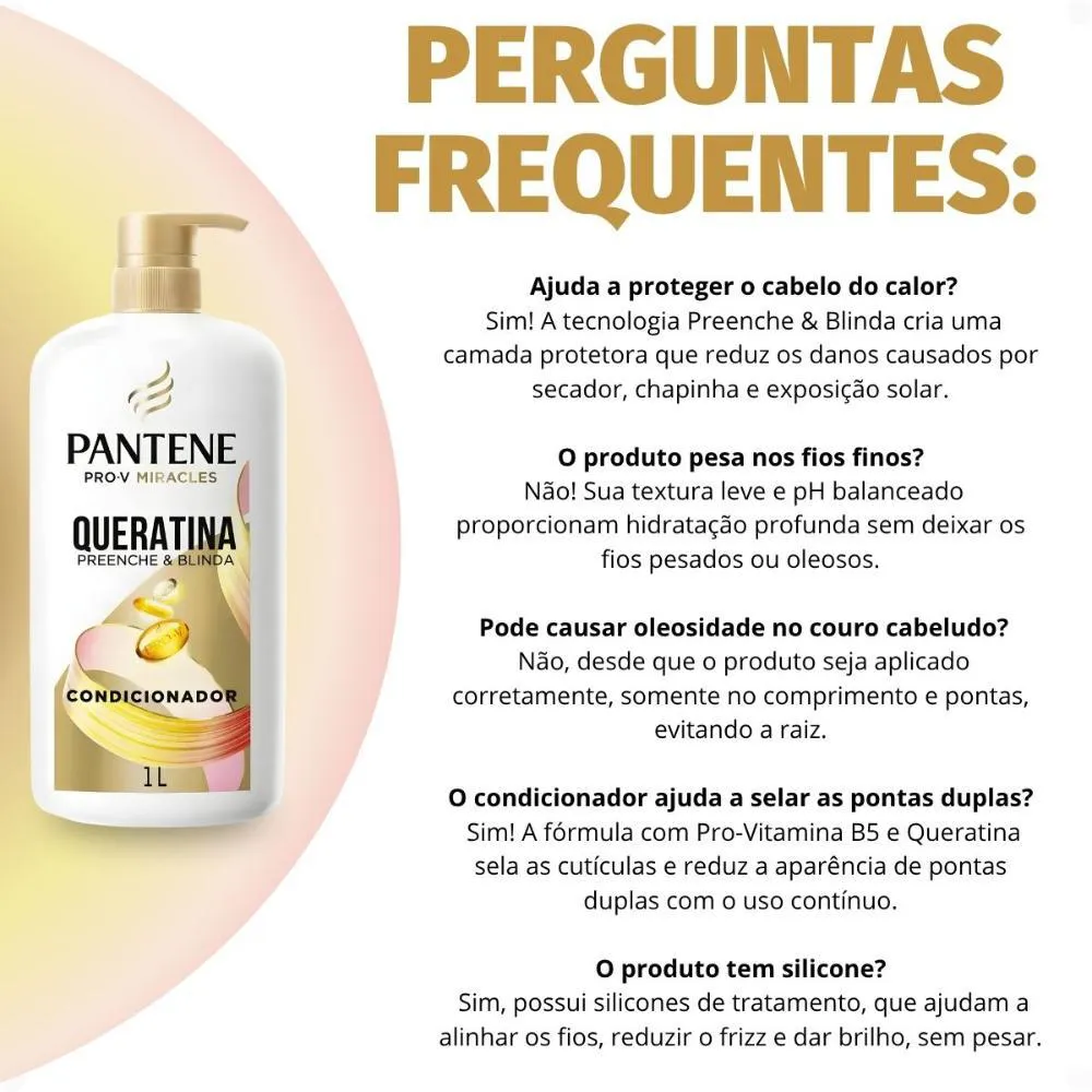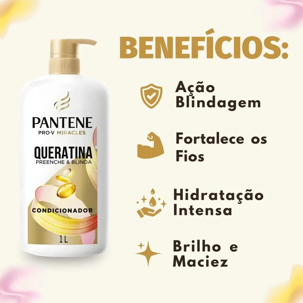 Descubra o poder transformador do Condicionador Pantene Pro-V Queratina Preenche e Blinda 1L, a solução ideal para quem busca revitalizar cabelos danificados e sem vida. Desenvolvido com uma fórmula avançada de Queratina e Pro-vitamina B5, este condicionador atua profundamente nos fios, preenchendo e alinhando as áreas mais comprometidas. Diga adeus ao cabelo frágil e sem brilho, e olá a uma cabeleira mais forte, resistente e visivelmente saudável. Com sua ação de Preenche e Blinda, ele proporciona desembaraço e proteção contra danos causados pelo calor, deixando seus cabelos mais resistentes e com um brilho espetacular.Benefícios Principais