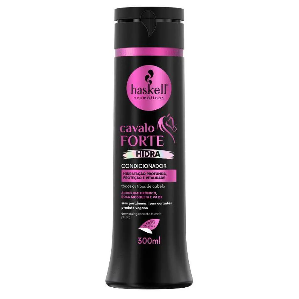 O Condicionador para Hidratação e Crescimento Haskell Cavalo Forte Hidra deixa os fios macios, sedosos e com brilho intenso. Especialmente desenvolvido para realizar a reposição hídrica nos fios, esta linha proporciona hidratação intensa e brilho extra à fibra capilar. Os ativos ácido hialurônico, rosa mosqueta e B3 agem na camada mais profunda do fio, evitando o ressecamento e deixando os cabelos com mais maleabilidade. Benefícios: Deixa os fios macios e sedosos. Ação doadora de brilho. Hidratação intensa. Evita o ressecamento dos fios. Promove maleabilidade aos cabelos. Especificações: pH Sem parabenos | Sem corantes Direção olfativa: Cítrico frutal. Indicação: Para todos os tipos de cabelo. DÚVIDAS FREQUENTES: Qual a validade do produto? Haskell tem validade de 2 anos a partir da data de fabricação. Tem em estoque? Temos todos os nossos produtos disponíveis para . Produto? Adquirido diretamente do distribuidor autorizado Haskell. personalizado? Elaboração de kits sob medida. OBSERVAÇÕES SOBRE A COMPRA: Mimos e + mimos e com o pedido sempre tem um cupom! Sabia!? Compras efetuadas até as 14 hrs serão enviadas no mesmo dia. Compras efetuadas sexta-feira após as 14 hrs serão enviadas no dia útil seguinte. Todos os produtos são enviados com . Caso seu produto chegue não se preocupe, fale com a gente! baterias são necessárias?: | Informações sobre alérgenos: | Principais Características do Produto 0: | Estilo de vida: | Volume do item: | Principais Características do Produto 2: | Principais Características do Produto 1: | Palavras-chave de Pesquisa: | Contagem de unidades: | O Produto pode Expirar: | Formato do item: | Contém conteúdo líquido: | Aroma: | Quantidade de itens: | Ingredientes: | Gênero do público-alvo: | Aviso de : | Preço sugerido sem impostos: | Fabricante: | Palavra-chave do público-alvo: | tipo de cabelo: | Fonte de energia: