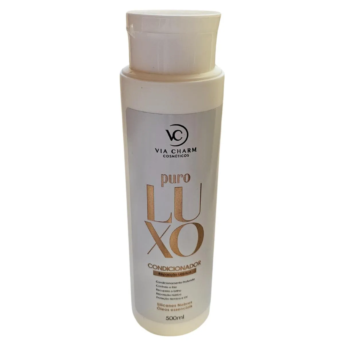 O Condicionador Puro Luxo Via Charm Cosméticos é um produto capilar desenvolvido para oferecer reposição lipídica aos fios, com uma fórmula que contém Silicones Nobres e Óleos Essenciais. Sua composição inclui um blend de 9 óleos (alecrim, lavanda, avelã, amêndoas, argan, coco, camélia, bio elixir e complex oil).