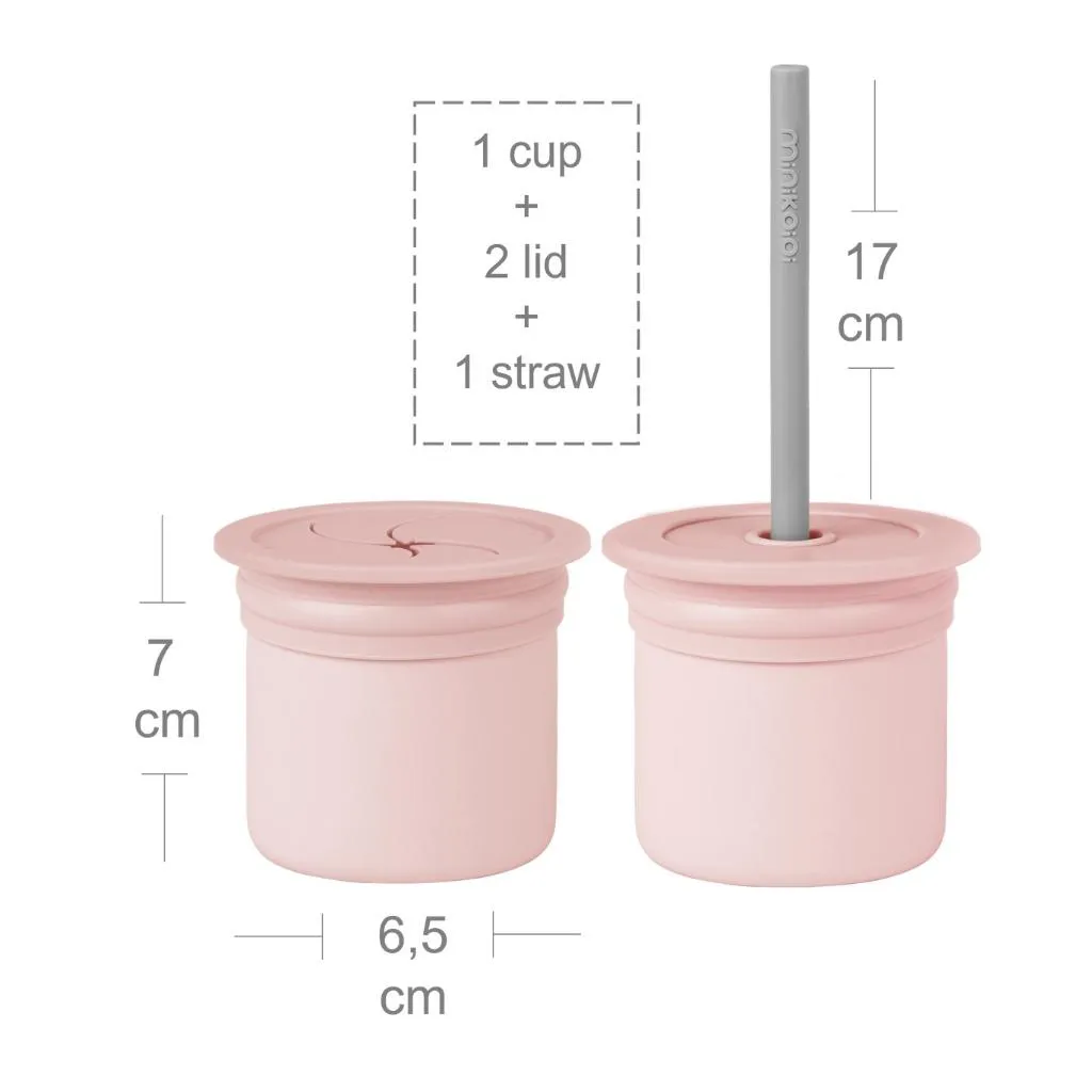 O Copo Sip + Snack da Minikoioi é um item versátil e seguro, desenvolvido para bebês a partir de 6 meses. Feito 100% em silicone de qualidade alimentar, ele é uma alternativa saudável ao plástico e oferece duas funções em um único produto. Com duas tampas intercambiáveis, pode ser usado como copo com canudo ou recipiente para snacks, incentivando a autonomia da criança e reduzindo bagunças durante a alimentação.