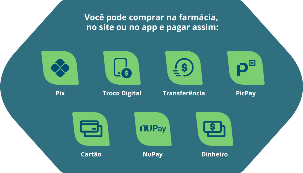 Cada um tem seu jeitinho de pagar: em dinheiro, à vista ou parcelado no cartão, por aproximação ou pelo seu aplicativo favorito. Por aqui, respeitamos e aceitamos todos. Afinal, quem se cuida sabe: o que tem valor, de verdade, é a saúde.