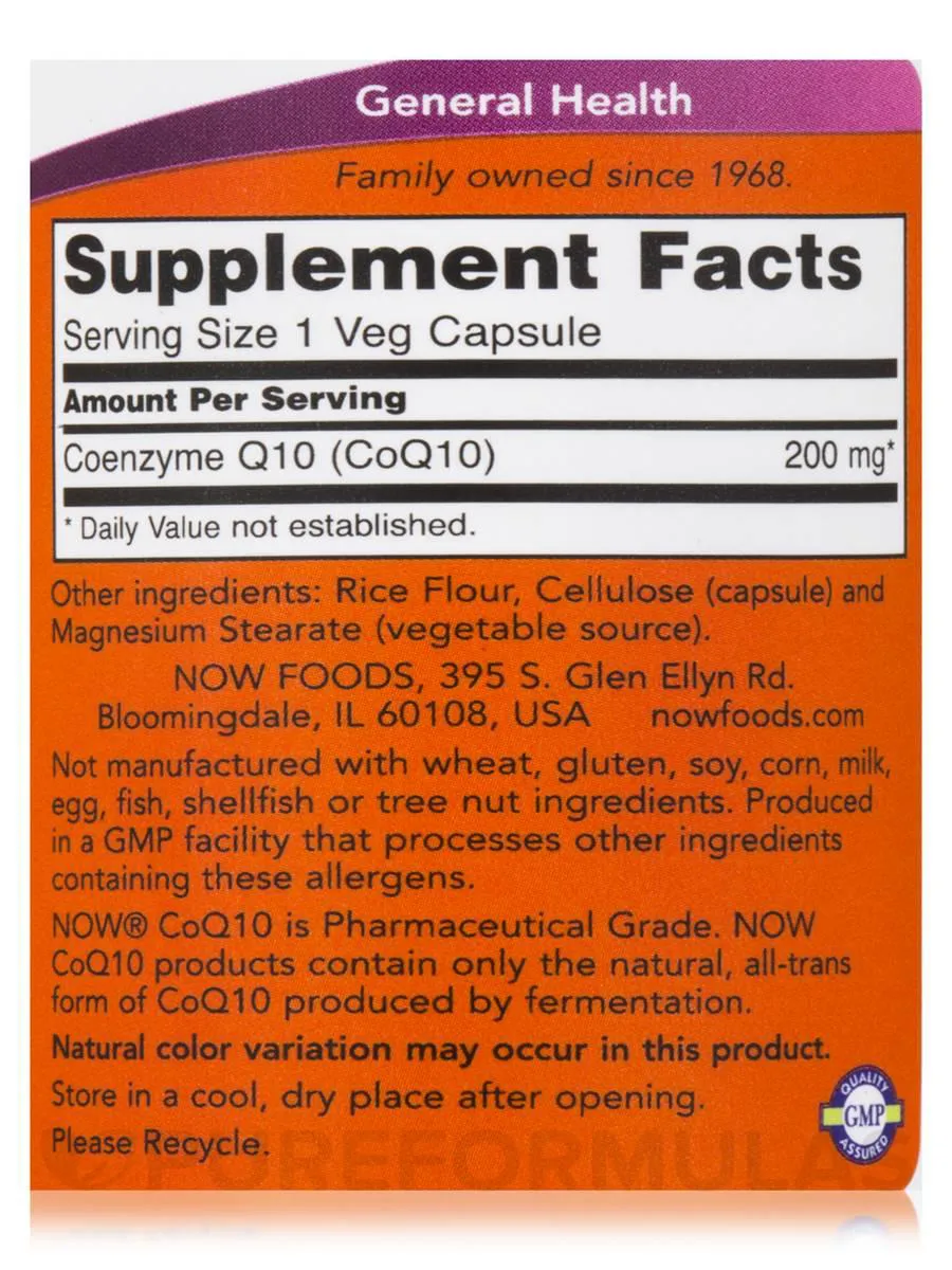 Coq10 Coenzima Q10 200Mg (60 Vcaps) Now Foods