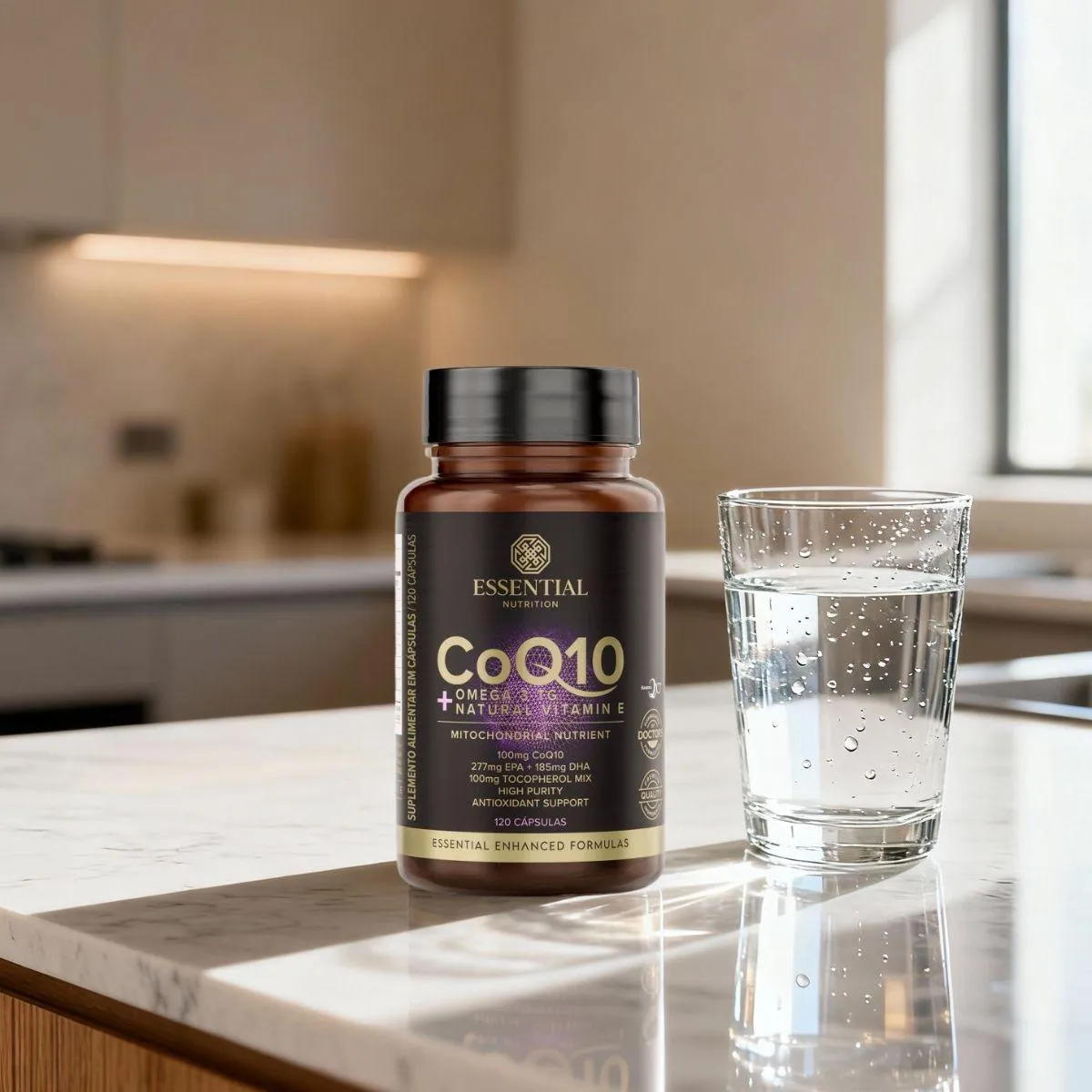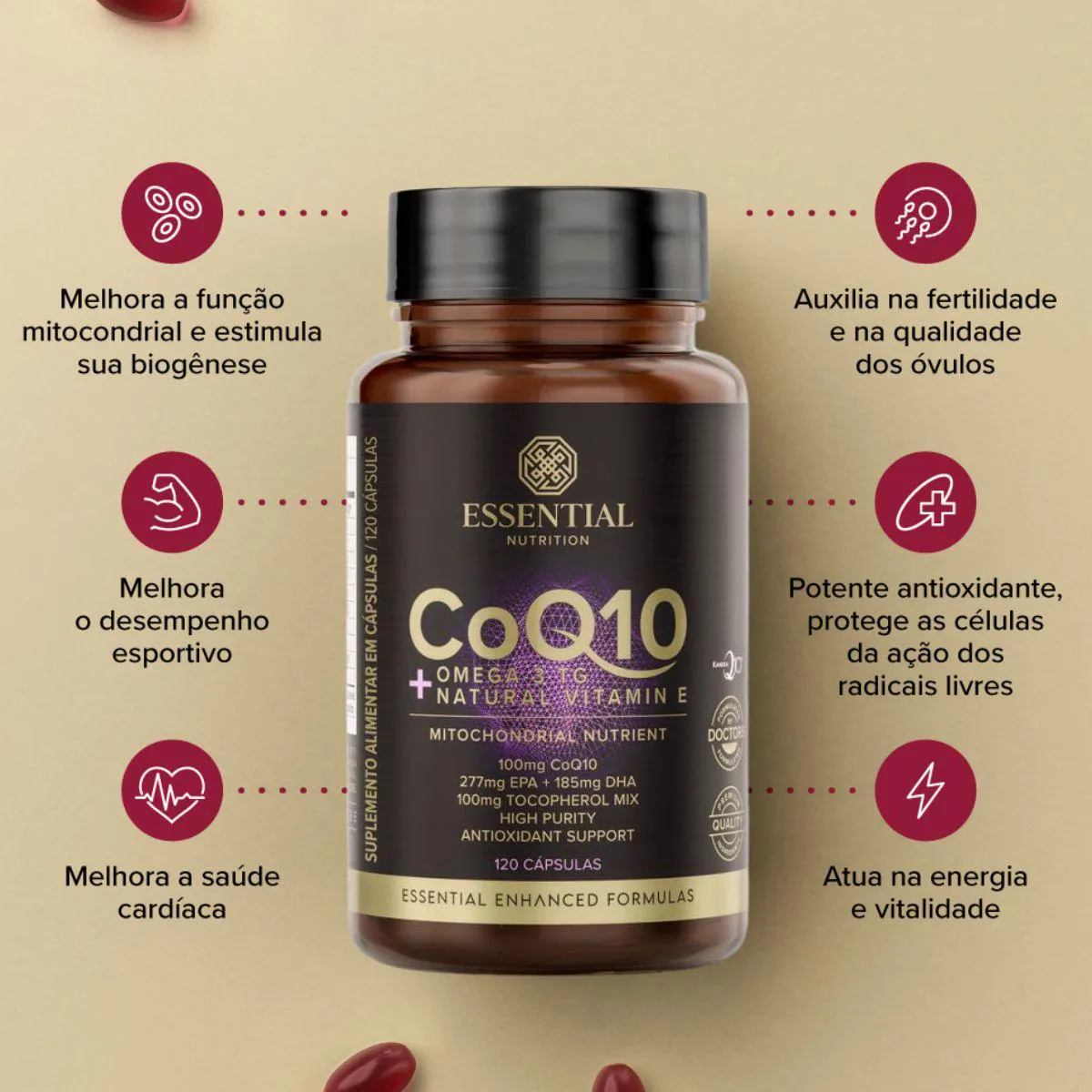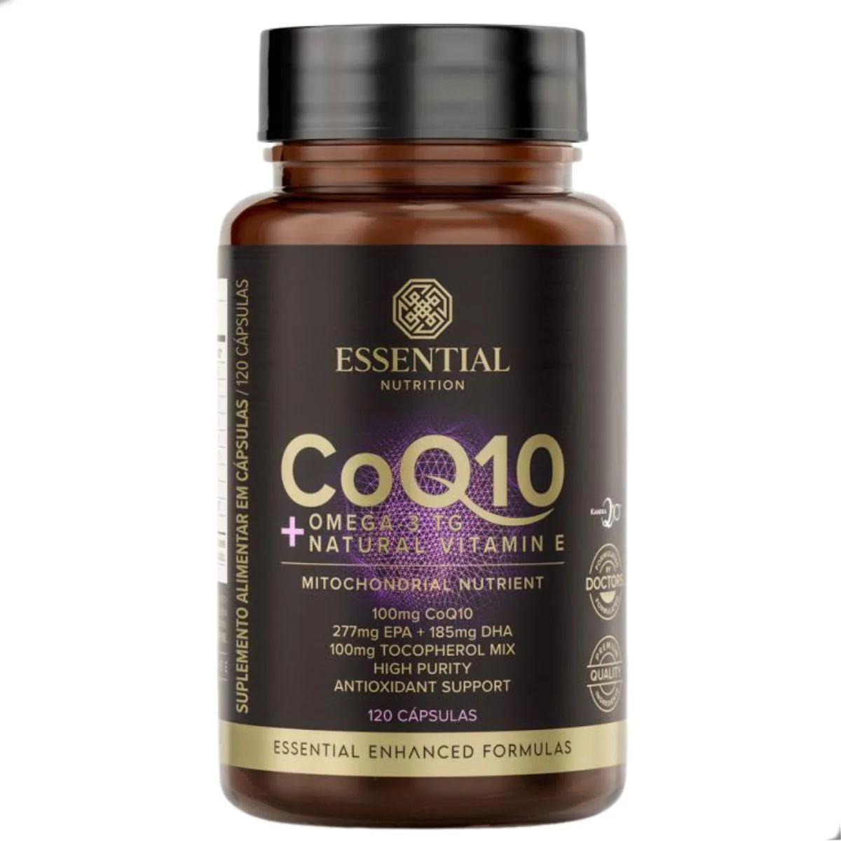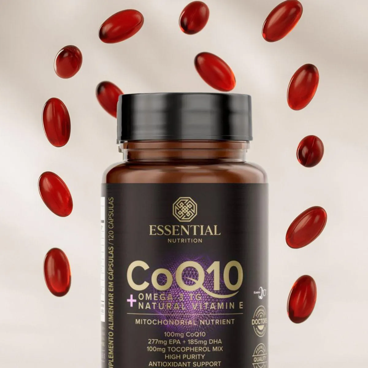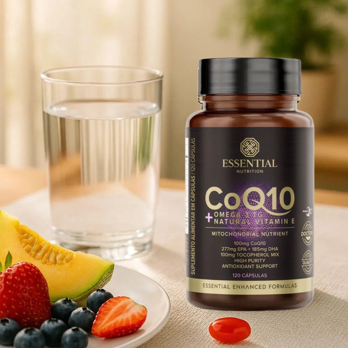 O suplemento CoQ10 + Ômega 3 TG + Vitamin E Natural, em embalagem com 120 cápsulas, combina três nutrientes reconhecidos na alimentação: coenzima Q10, óleo de peixe na forma de triglicerídeos e vitamina E de origem natural. Desenvolvido pela Essential Nutrition, ele foi pensado para quem deseja complementar a dieta com compostos de alta qualidade.