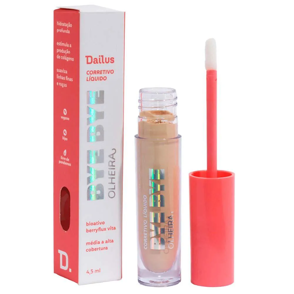 O Corretivo Líquido Bye Bye Olheira da DAILUS chegou com tudo! Com média a alta cobertura e acabamento acetinado, é ideal para disfarçar olheiras, corrigir imperfeições e uniformizar o tom da pele.