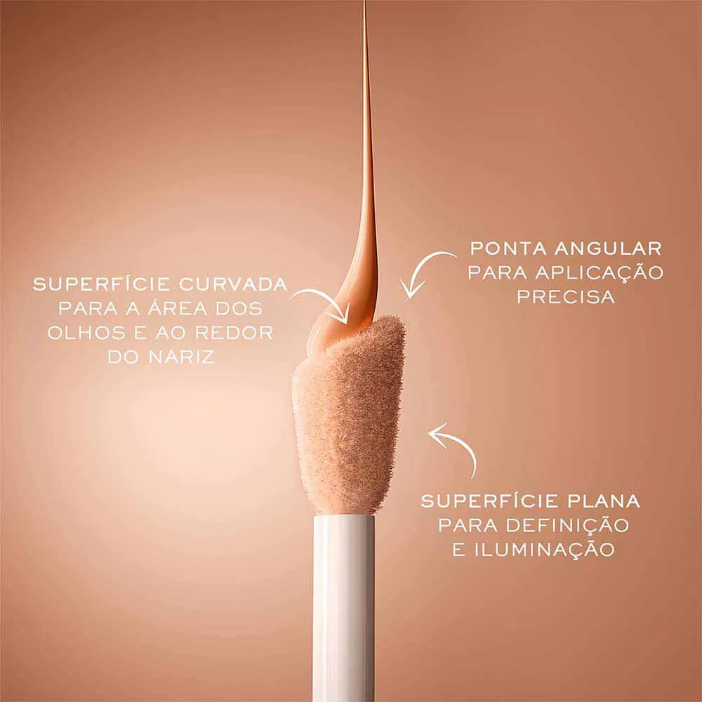 - Aplicador multifuncional em forma de diamante, que permite desfocar áreas escuras, corrigir imperfeições com precisão, levantar o olhar e o rosto, além de realçar os ossos das sobrancelhas, nariz e lábios;
