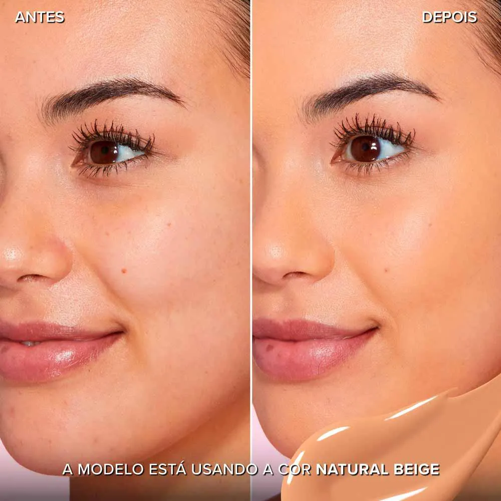 Para retocar e ocultar a hiperpigmentação ou tom de pele irregular: coloque um ponto diretamente na área de tom irregular e misture na pele com os dedos, pincel de corretivo ou esponja do tipo Beauty Blender em um movimento de pressão (pontilhado) até ficar perfeito.
