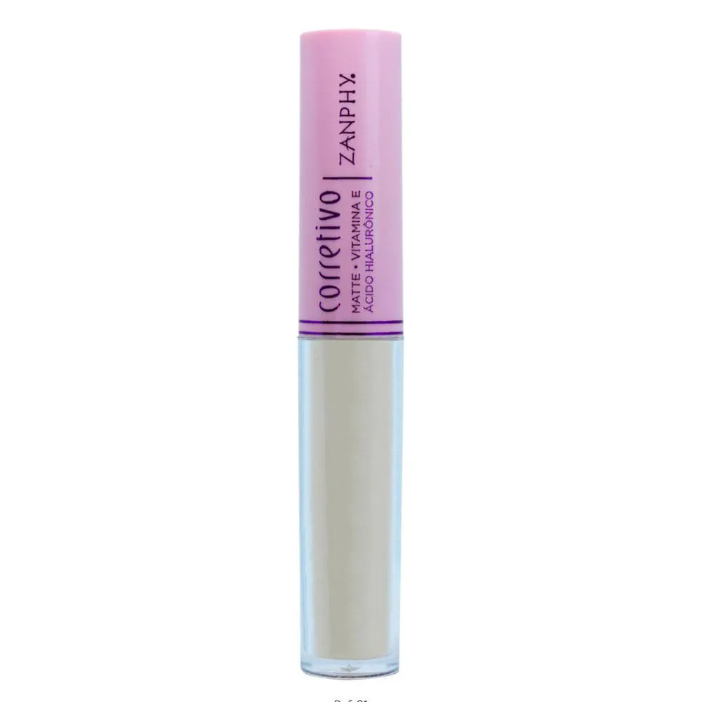 O Corretivo Líquido Zanphy foi reformulado para apresentar uma melhor cobertura. Além de uma excelente cobertura e efeito matte, o Corretivo Líquido Zanphy possui vitamina e e Ácido Hialurônico em sua formulação, que ajudarão a hidratar a sua pele, acabando com aquele efeito craquelado que normalmente fica abaixo dos olhos.