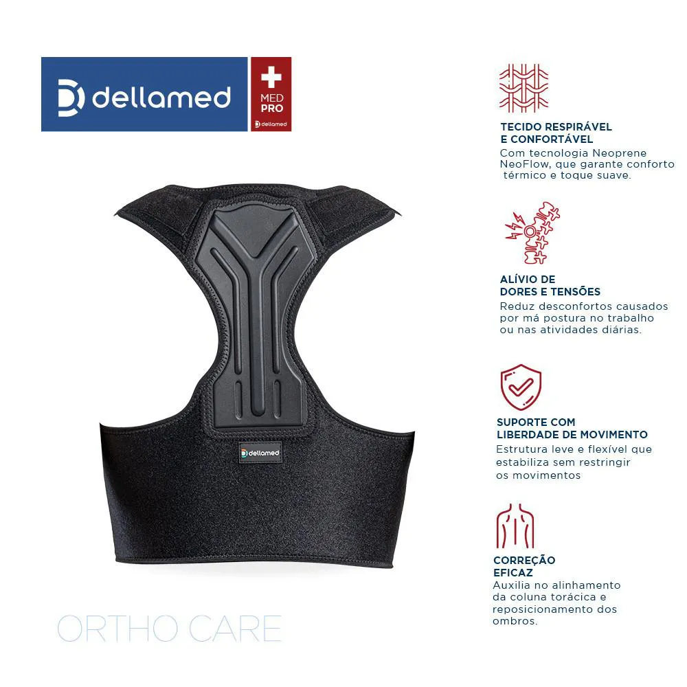 O Corretor Postural Dellamed foi desenvolvido para promover o alinhamento da coluna torácica, auxiliando na correção postural e na prevenção de dores nas costas e ombros causadas por má postura. Seu design ergonômico com faixas ajustáveis e reforço posterior em PU oferece tração eficaz e conforto durante o uso. Confeccionado em neoprene de alta qualidade, nylon e componentes estruturais em PU e plástico, proporciona ajuste anatômico e respirabilidade, ideal para uso contínuo em atividades diárias ou tratamento fisioterapêutico.