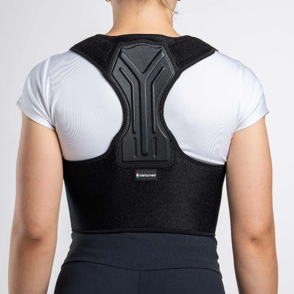 O Corretor Postural Dellamed foi desenvolvido para promover o alinhamento da coluna torácica, auxiliando na correção postural e na prevenção de dores nas costas e ombros causadas por má postura. Seu design ergonômico com faixas ajustáveis e reforço posterior em PU oferece tração eficaz e conforto durante o uso. Confeccionado em neoprene de alta qualidade, nylon e componentes estruturais em PU e plástico, proporciona ajuste anatômico e respirabilidade, ideal para uso contínuo em atividades diárias ou tratamento fisioterapêutico.