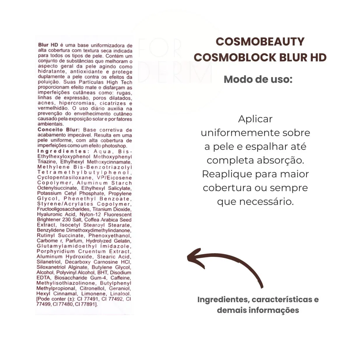 - Efeito mate, disfarça imperfeições cutâneas.