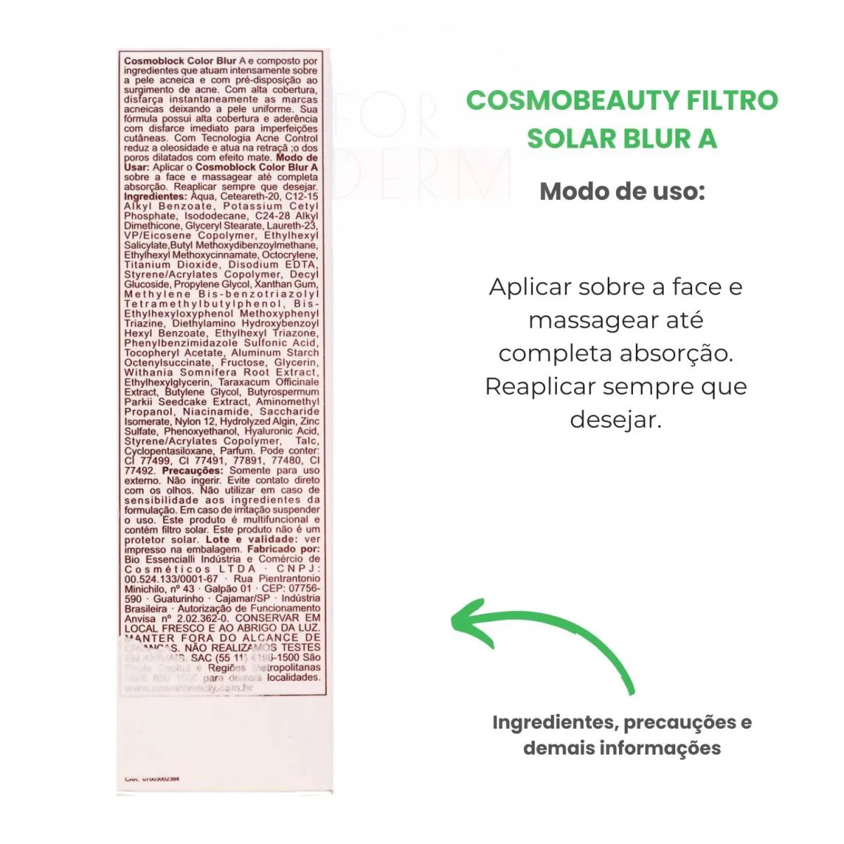 Cosmobeauty Filtro Solar Anti Acne Cosmoblock Blur A Fps 80 50G - Natural