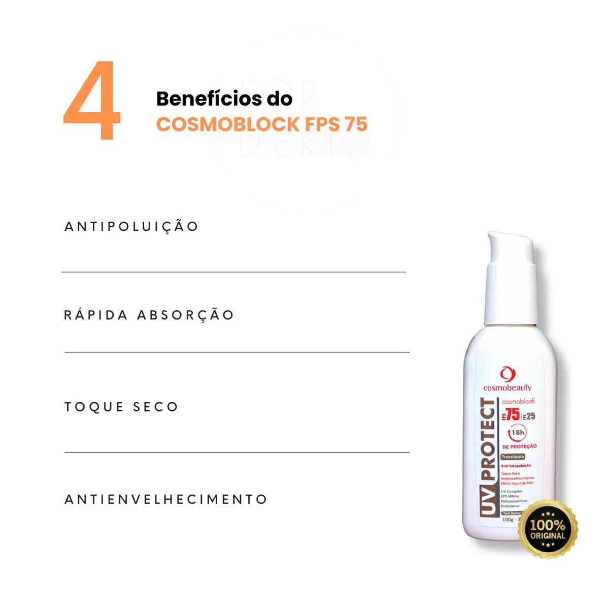 Cosmobeauty Filtro Solar Cosmoblock Fps 75 Antipoluição Sem Cor 18H 100G