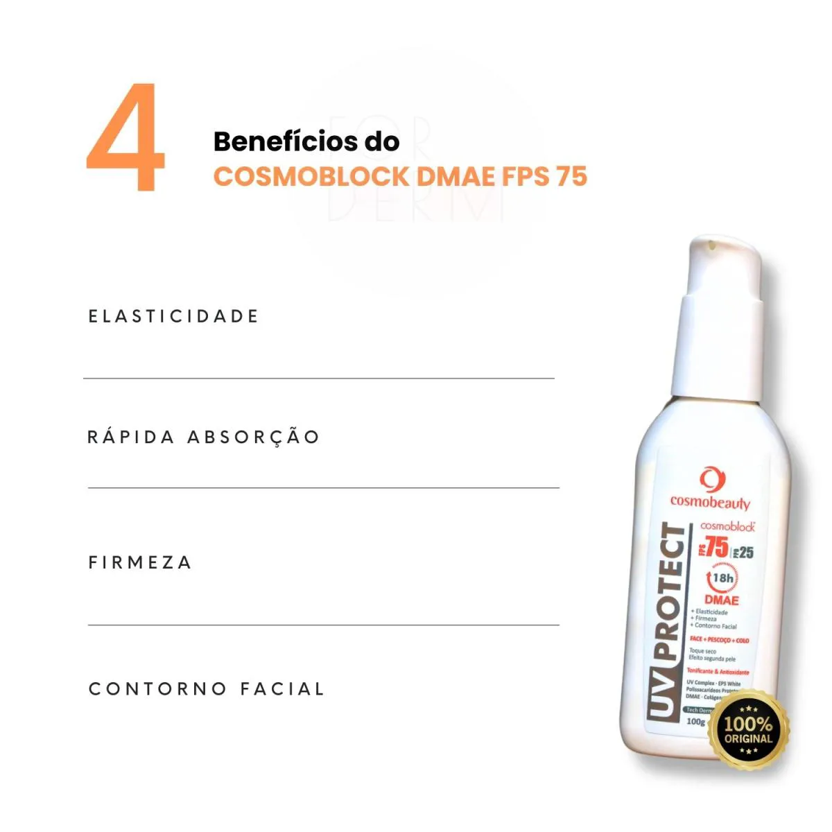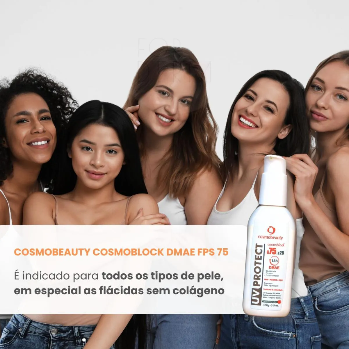 Cosmobeauty Filtro Solar Cosmoblock Fps 75 Peles Envelhecidas Face Pescoço e Colo com Dmae 100G