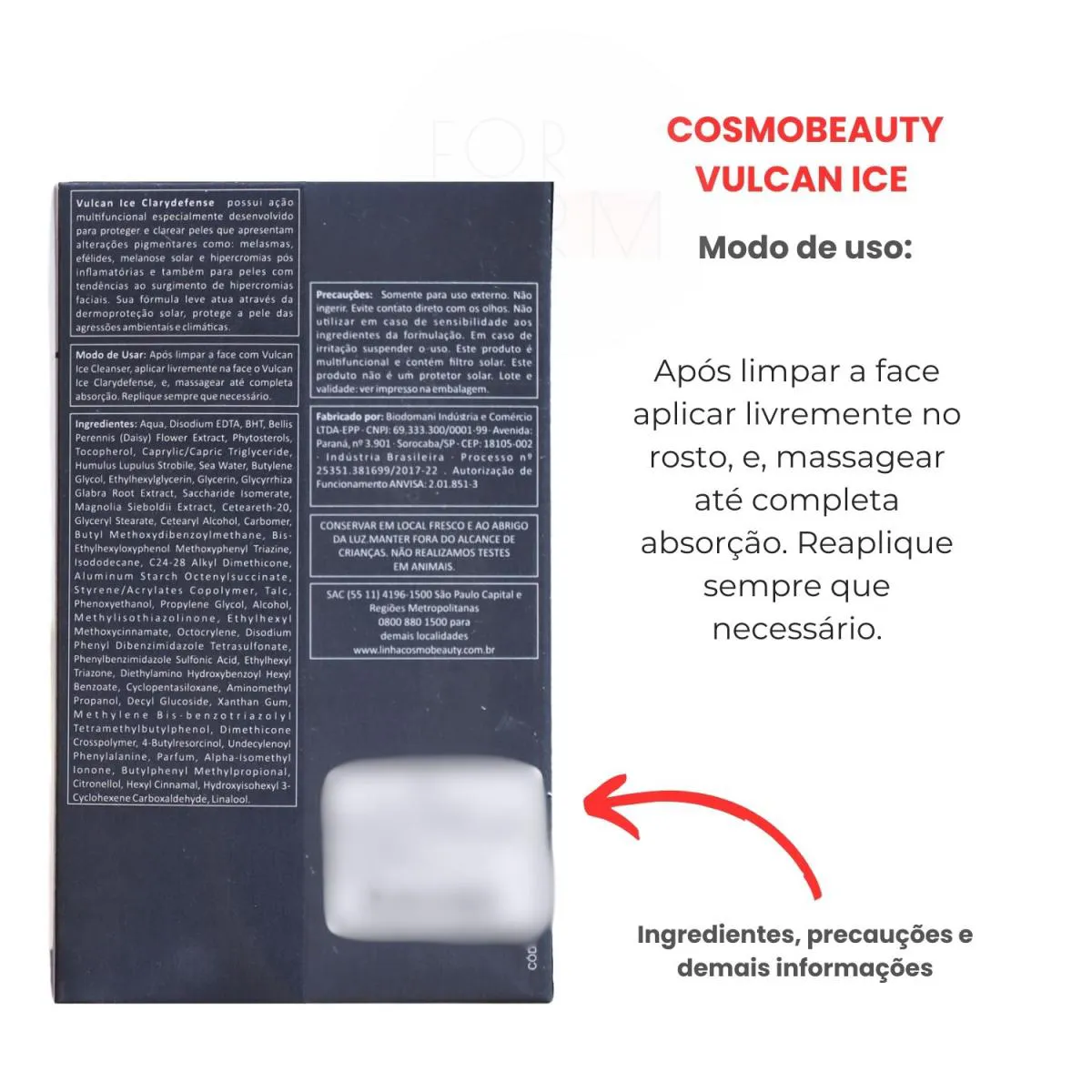 Como usar o Cosmobeauty Filtro Solar Vulcan Ice Clarydefense Fps 50 Melasmas 18H 50G?