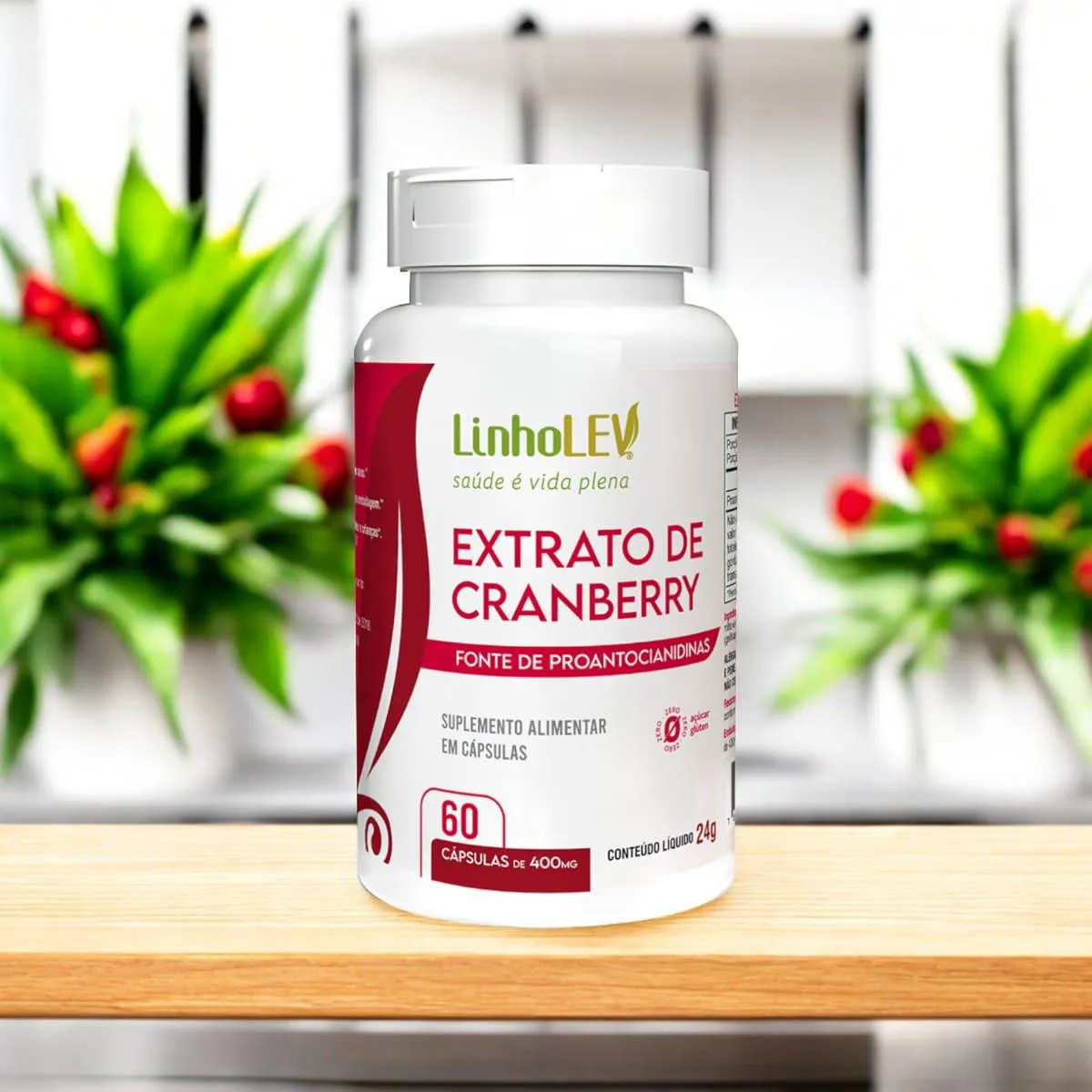 O Cranberry 60 Cápsulas da Linho Lev é um suplemento alimentar formulado com extrato de cranberry (Vaccinium macrocarpon) em pó. O cranberry é reconhecido por suas propriedades antioxidantes e por auxiliar na saúde do trato urinário.