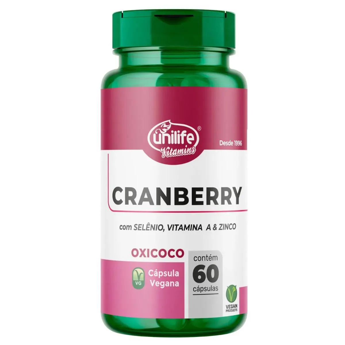 Cranberry 60 cps Unilife - com Selênio, vitamina A e Zinco !! As cápsulas de Cranberry, também conhecidas como cápsulas de arando, são um suplemento alimentar rico em vitamina c, proantocianidinas e minerais, como zinco e selênio, com ação antioxidante que ajudam a combater os danos causados pelos radicais livres nas células.