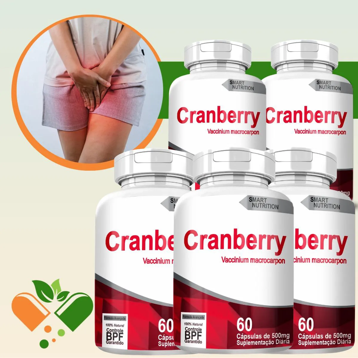 Cranberry Kit com 5 Potes com Total de 300 Capsulas