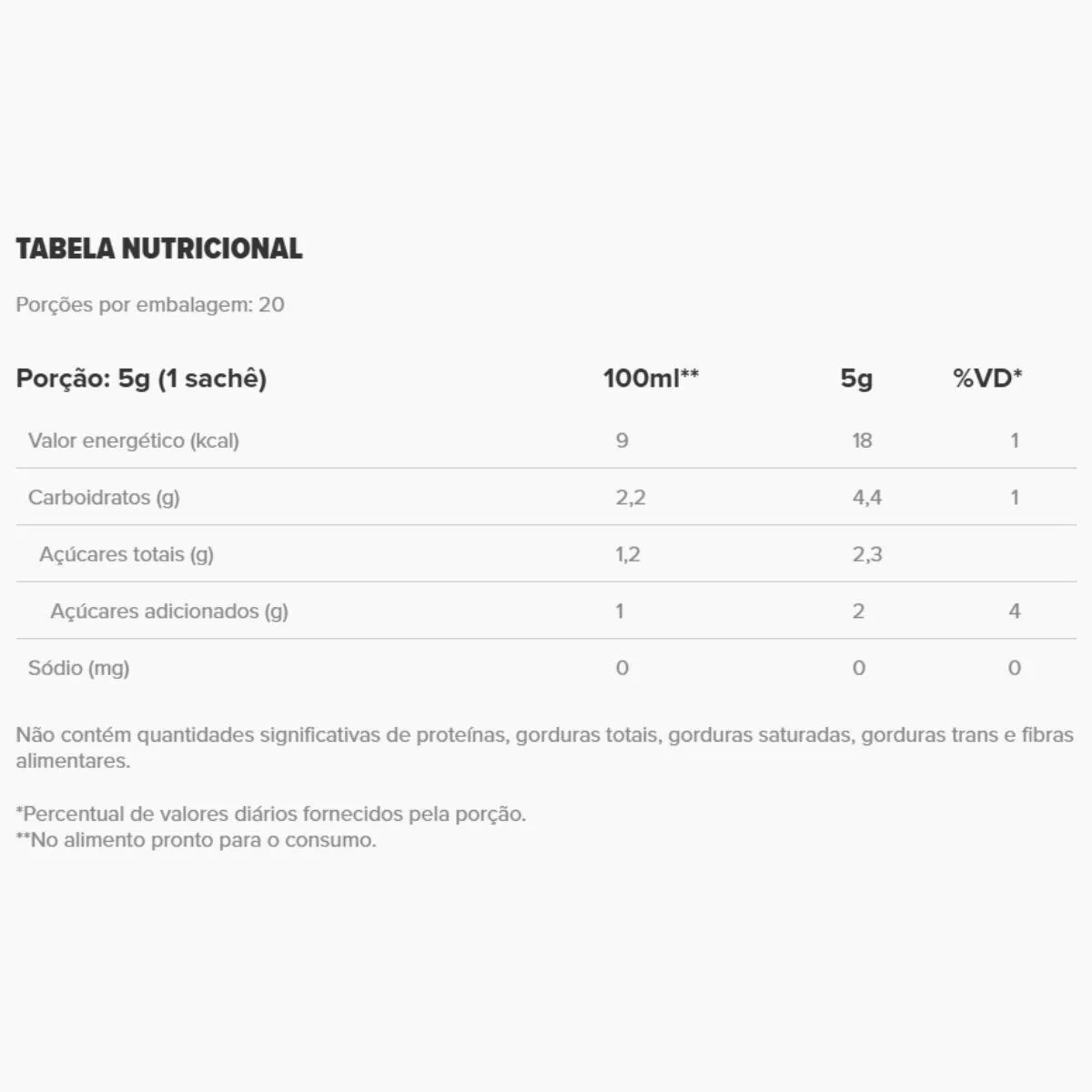 - Baixa caloria e sem açúcares adicionados.
