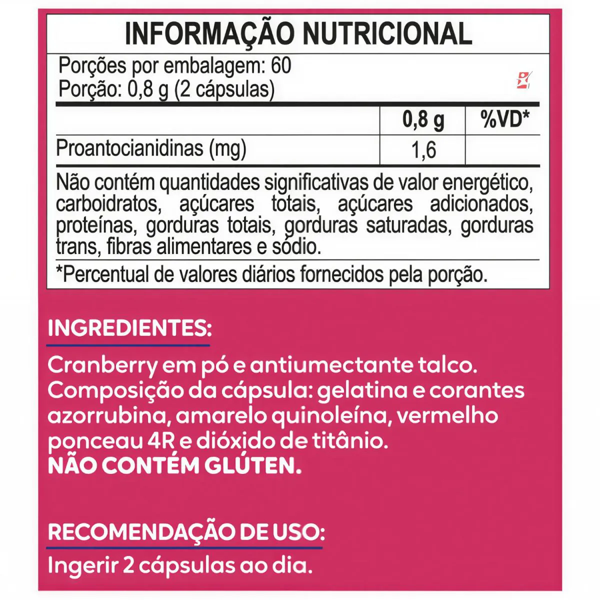 CRANBERRY PROANTOCIANIDINAS APENAS 2 CÁPSULAS AO DIA 120 CÁPSULAS – MALTTA NUTRITION DESCRIÇÃO O cranberry ocupa uma posição de destaque entre as frutas, tanto em qualidade quanto em quantidade de antioxidantes. BENEFÍCIOS - Rico em proantocianidinas; - Apenas 2 cápsulas ao dia; - 1,6mg de proantocianidinas por porção de 2 cápsulas; - Alto rendimento; - Cada frasco fornece 60 doses/porções; - Selo eureciclo. SUGESTÃO DE USO Ingerir 1 cápsula ao dia. TABELA NUTRICIONAL -COMPOSIÇÃO & RECOMENDAÇÕES ANEXO NAS IMAGENS. DADOS TÉCNICOS Registro ANVISA – Produto de acordo com a RDC 27/2010 e RDC 240/2018. Marca – Duom: MALTTA NUTRITION Conteúdo líquido total – 120 Cápsulas. Rendimento líquido total – 60 doses/porções. Peso líquido total – 48g. Peso bruto total – 99g. Peso produto + embalagem (aproximado) – 150g. Código de barras (EAN) – 7898958836450. Dimensões do produto – altura 12cm; largura 6cm; comprimento6 cm. Dimensões da embalagem padrão – altura 7cm; largura 13cm; comprimento 16cm. ITENS DO ANÚNCIO - 1 Unidade do produto: CRANBERRY PROANTOCIANIDINAS APENAS 2 CÁPSULAS AO DIA 120 CÁPSULAS – MALTTA NUTRITION. - Total – 60 cápsulas POR FRASCO.