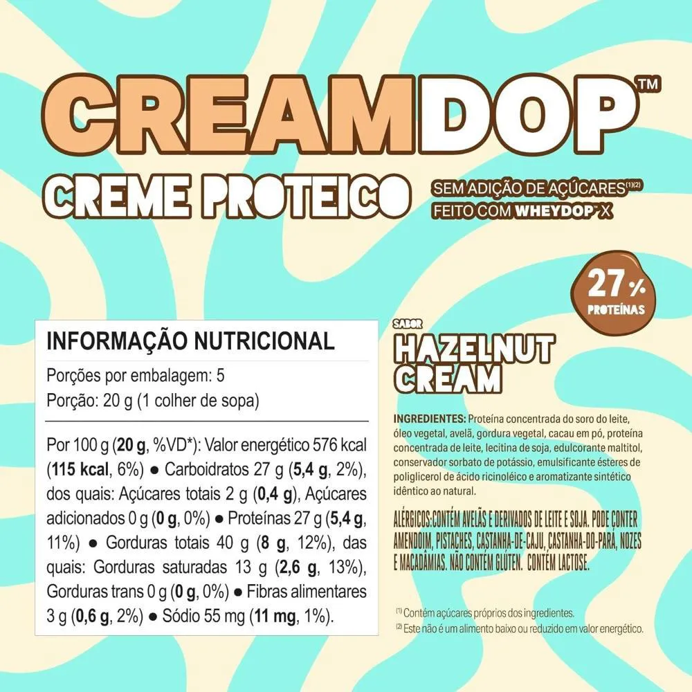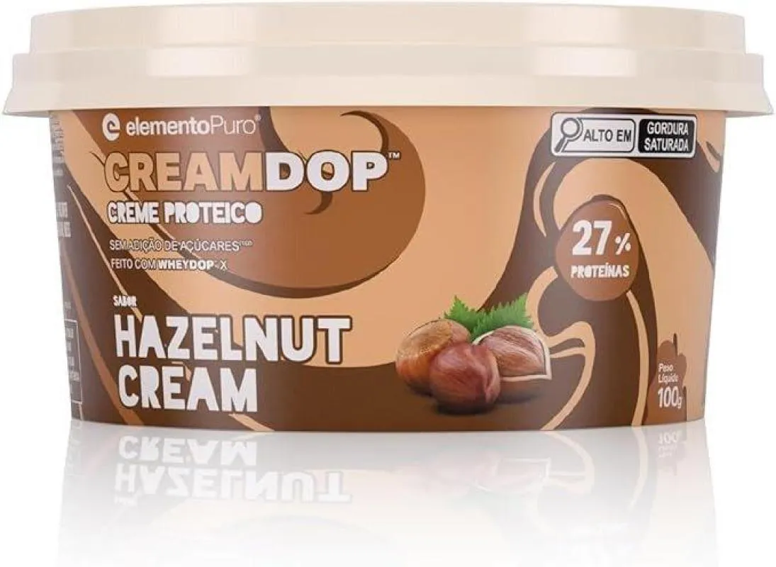 CREAMDOP™ Creme Proteico – Avelã 100 g Cremoso, nutritivo e sem adição de açúcares*, é o doce que sua dieta permite.
