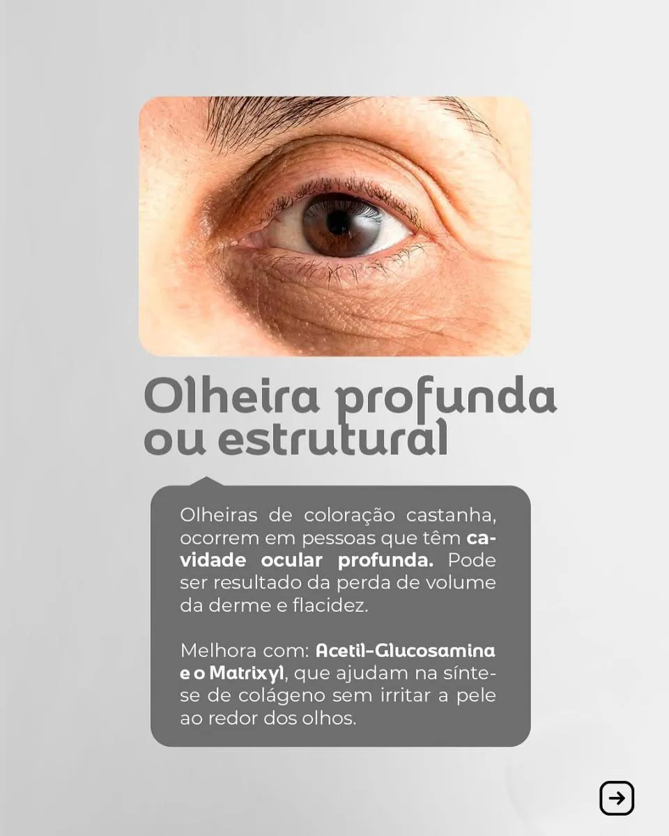 O Eye Cream oferece um tratamento completo para a área dos olhos, pois atua em todos os pontos de cuidado para a região: hidrata profundamente, estimula a síntese de colágeno e ácido hialurônico para maior firmeza da pele (diminuindo rugas e linhas finas), ameniza a hiperpigmentação causada pelo excesso de melanina e estimula a microcirculação da região, diminuindo bolsas e olheiras. Traz a moderna cafeína vetorizada por silício, que potencializa os efeitos da cafeína em melhorar bolsas e olheiras enquanto repõe o silício da pele, um nutriente fundamental para a produção de colágeno e ácido hialurônico.