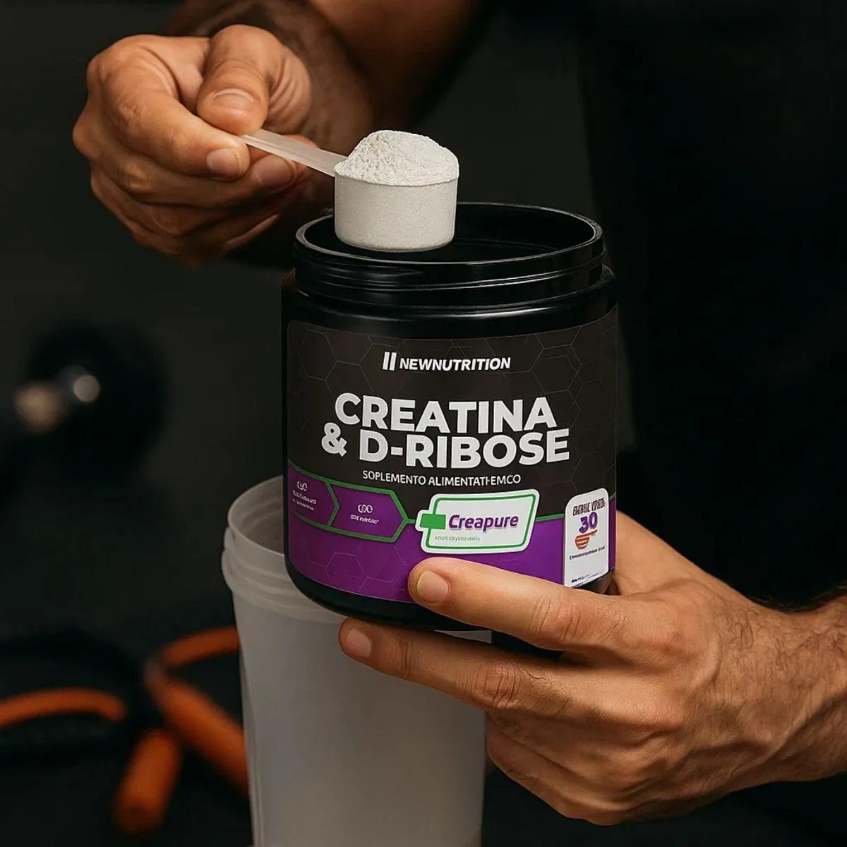 Entre os diferenciais, associação de creatina e ribose oferece perfil energético versátil; pote compacto com colher dosadora facilita o uso.
