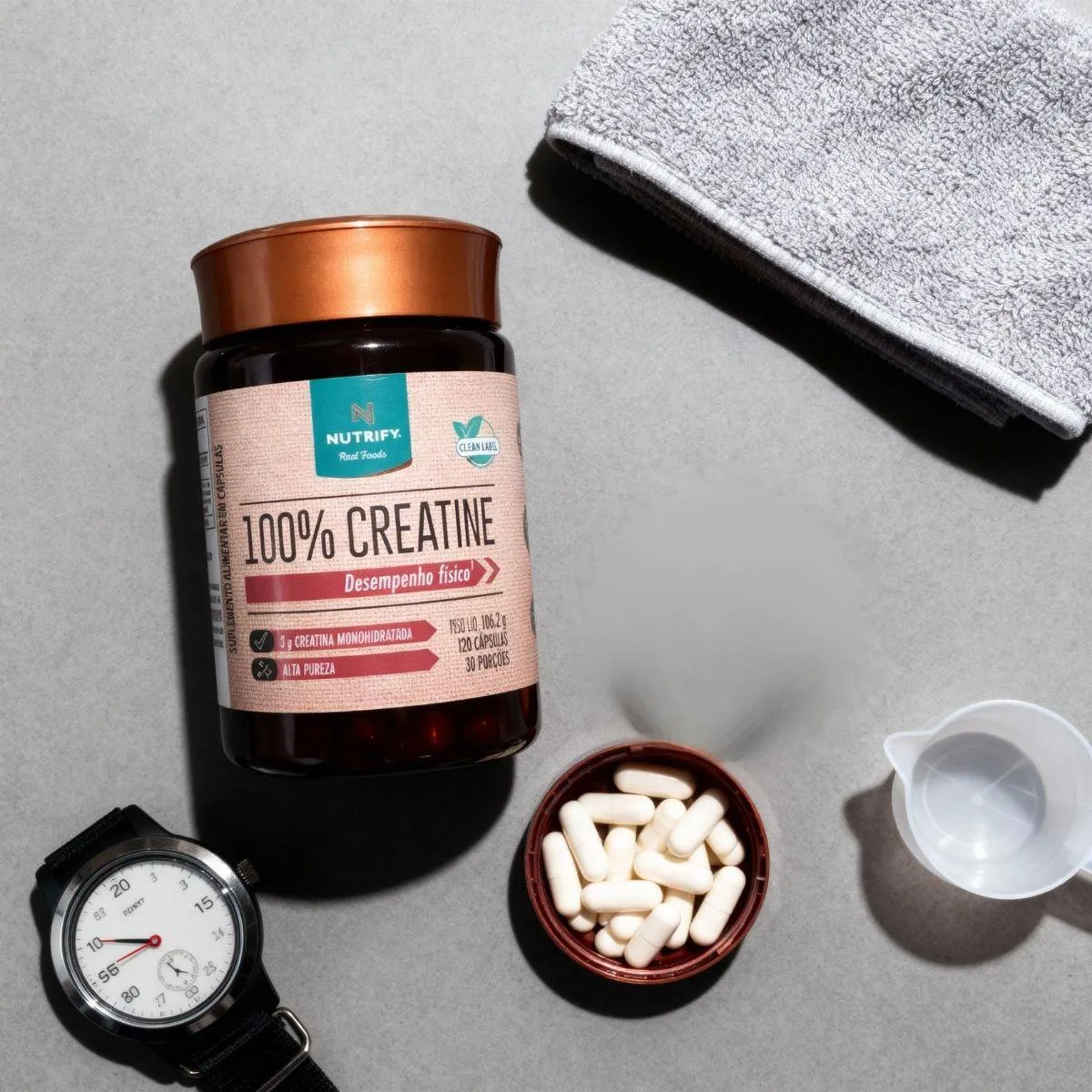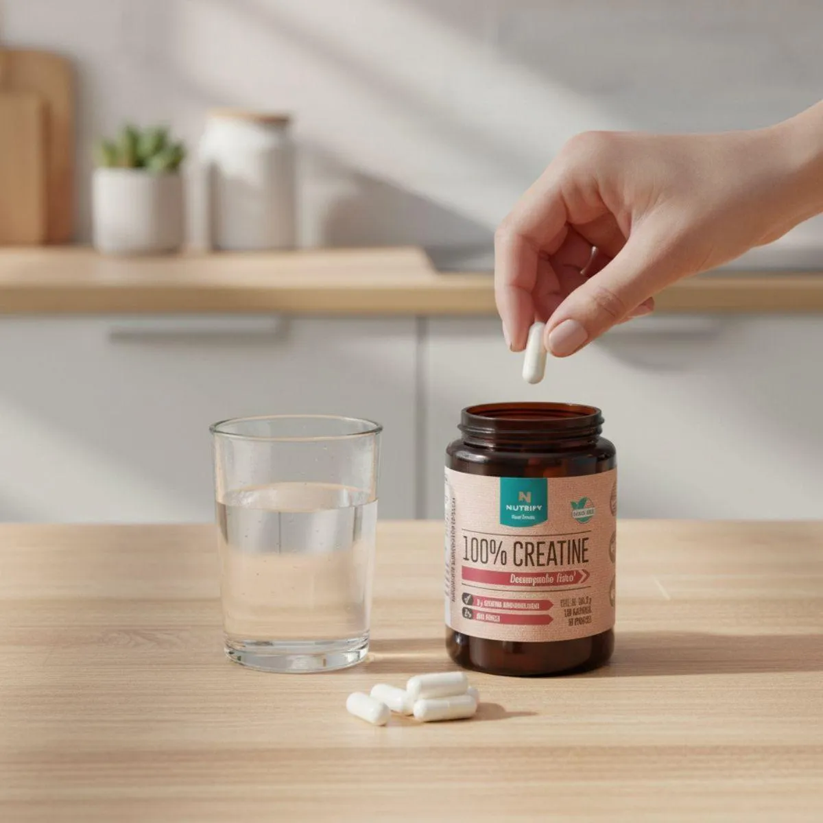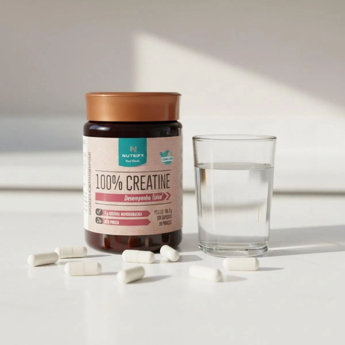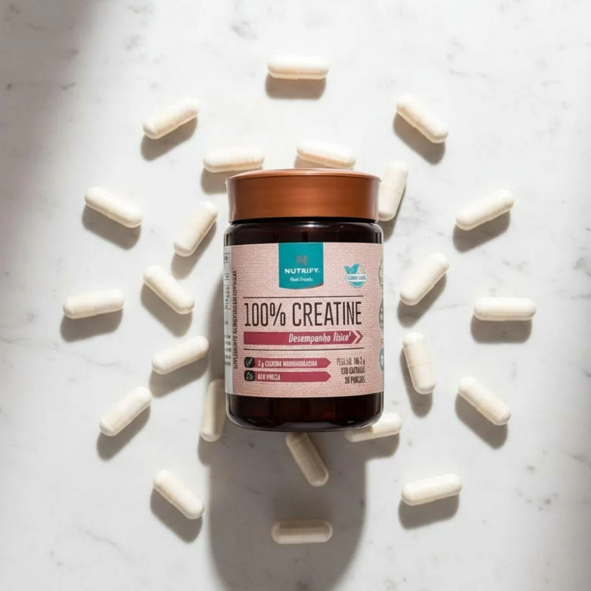 A creatina Monohidratada Nutrify em cápsulas foi pensada para quem busca praticidade na complementação da rotina nutricional. Com 120 unidades, oferece um formato simples de transportar e integrar ao dia a dia, alinhado ao conceito clean label da marca, que valoriza fórmulas essenciais e sem excessos.