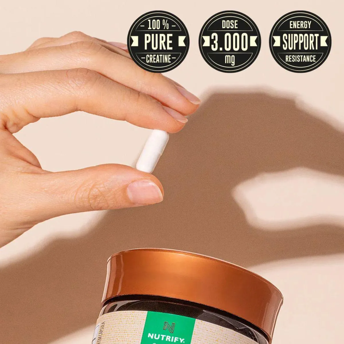 Sua composição utiliza creatina monohidratada pura, ingrediente amplamente conhecido no universo esportivo e presente naturalmente em diversos alimentos. A fórmula é livre de conservantes artificiais, corantes e aditivos desnecessários, reafirmando o compromisso da Nutrify com transparência e simplicidade.