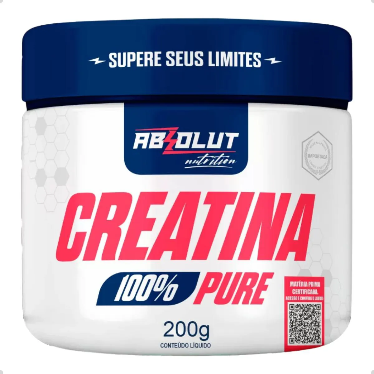 A creatina 100% Pure Monohidratada da Absolut Nutrition é apresentada em pó, sem adição de aromatizantes ou corantes. A matéria‑prima de alta pureza dissolve facilmente e pode ser incorporada a sucos ou shakes. A embalagem de 200 g oferece doses suficientes para um uso prolongado, proporcionando praticidade na suplementação.